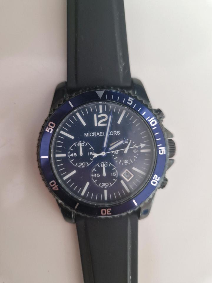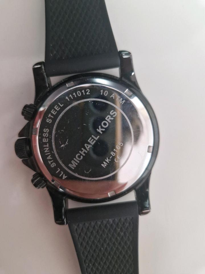 Продаю оригинальные мужские часы Michael Kors MK8165. Корпус 46 мм, хронограф (три дополнительных циферблата). Материал крепкий: минеральное стекло, водозащита до 100 метров (можно мыть руки, под дождь). Важно: часы сейчас не идут. Скорее всего села батарейка. Продаю как есть, потому и цена ниже рынка. Состояние нормальное, б/у. Без коробки. Браслет регулируется под руку (вынимаются лишние звенья). Все вопросы в чат, Артикул: 592281