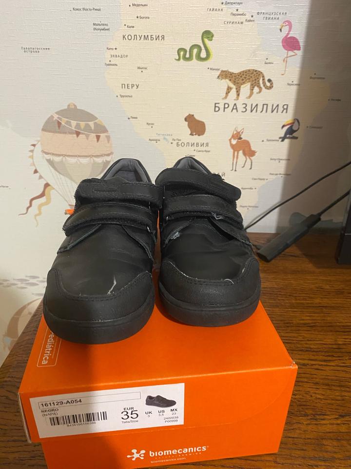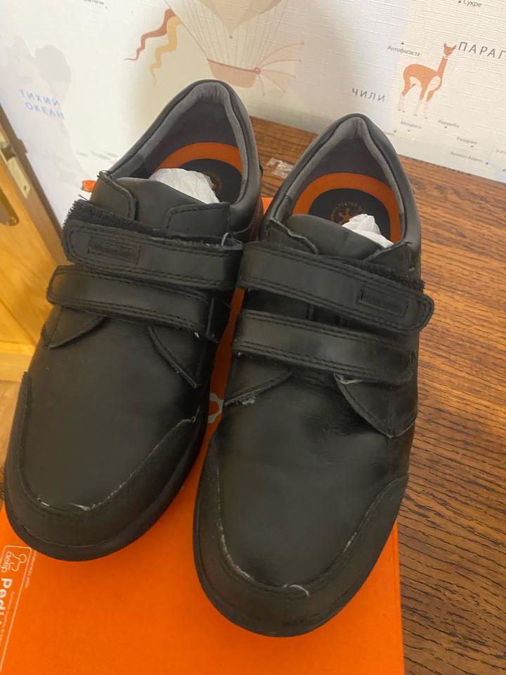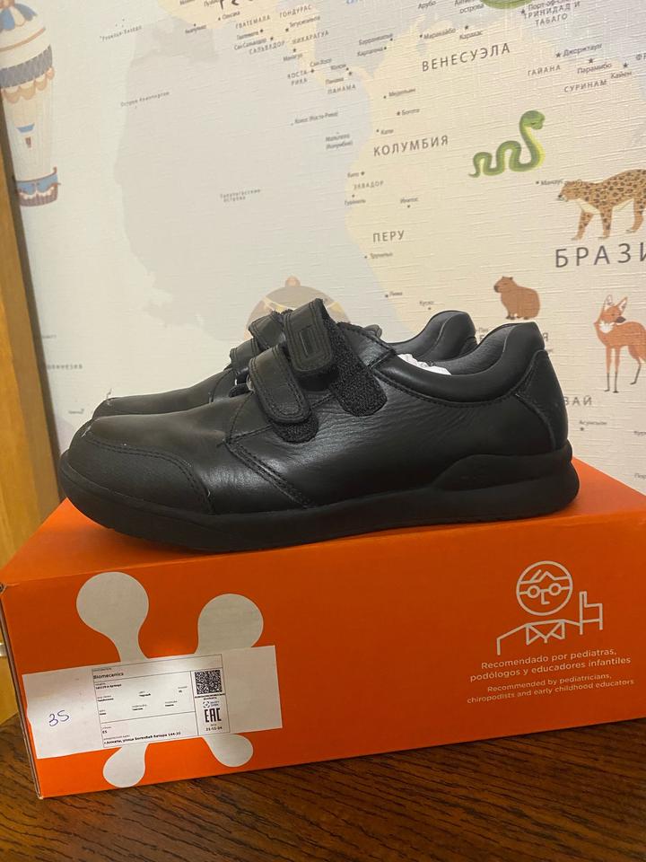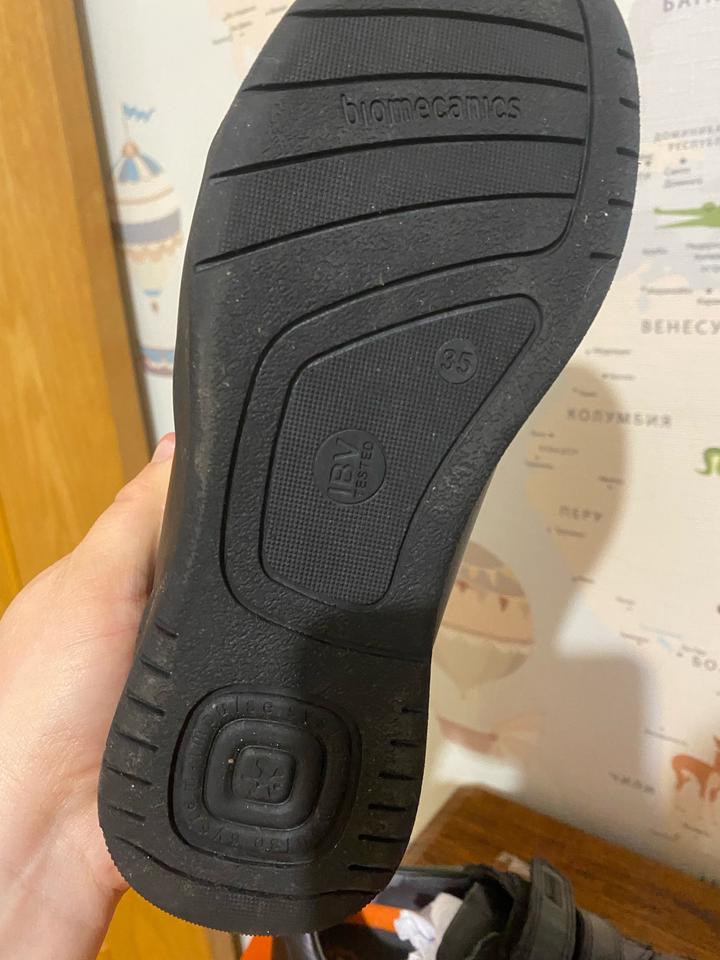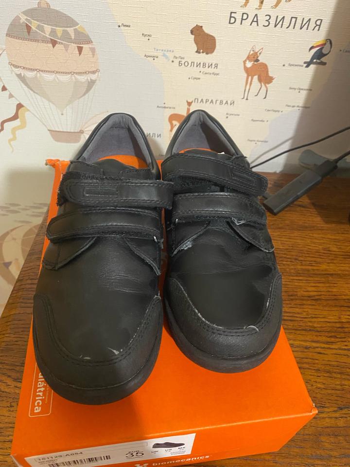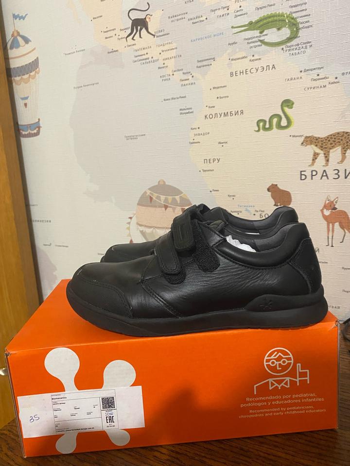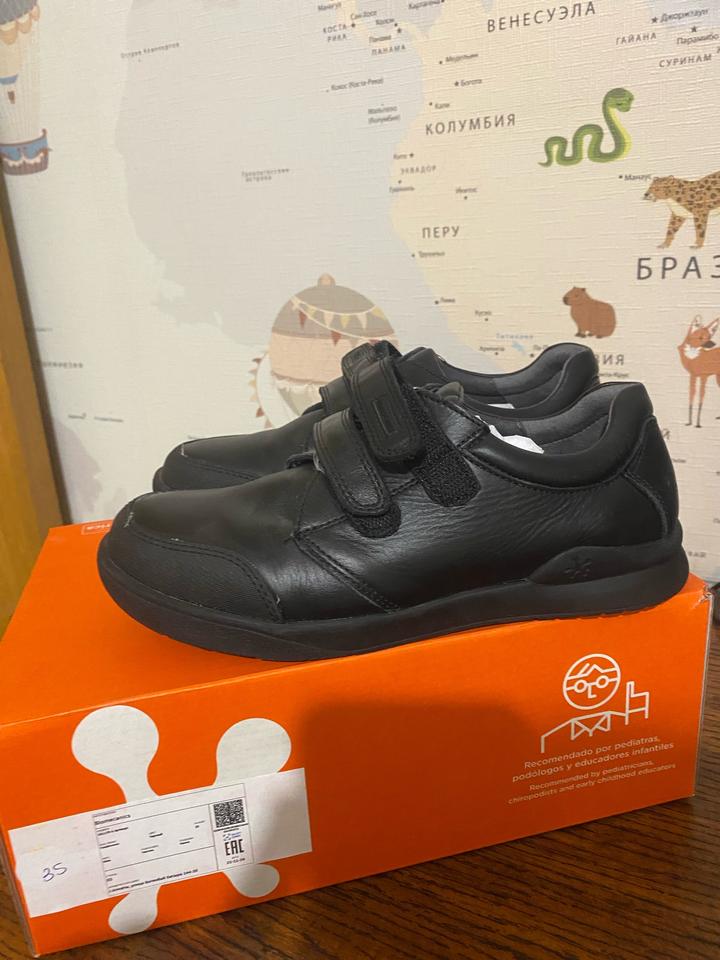 35 размер один раз , по подошве видно . Не носили, брала в школу . Как школьную обувь, не подошла по размеру . Кожа 100% фирма Испания известный бренд , по стельке 22,5 см Артикул: 592388