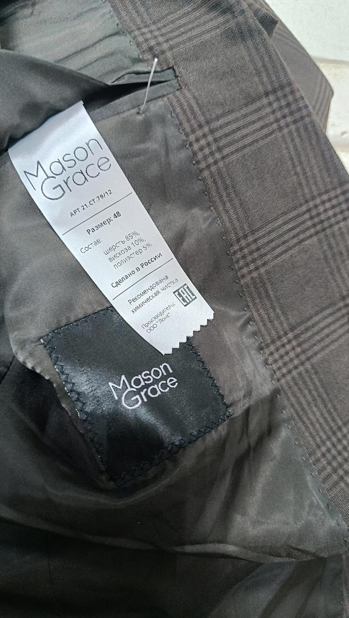 Мужской классический костюм в клетку. Отличное состояние. Состав ткани: 85% шерсть, 10% вискоза, 5% полиэстер. Такая комбинация делает ткань теплой, но при этом устойчивой к сминанию. Костюмы Mason Grace отличаются тем, что брюки часто имеют «свободную длину» и запас ткани в бедрах, что позволяет подогнать их под фигуру в ателье. Костюм двойка Артикул: 592461