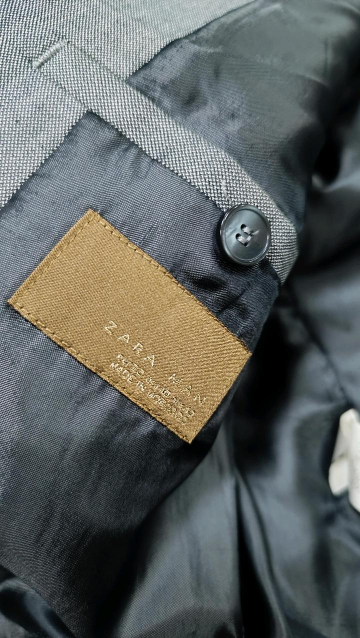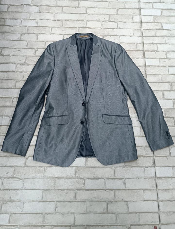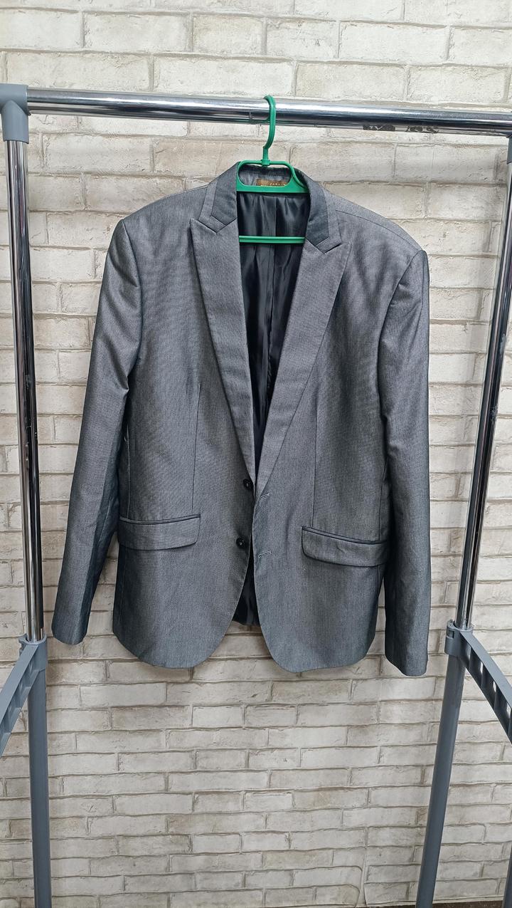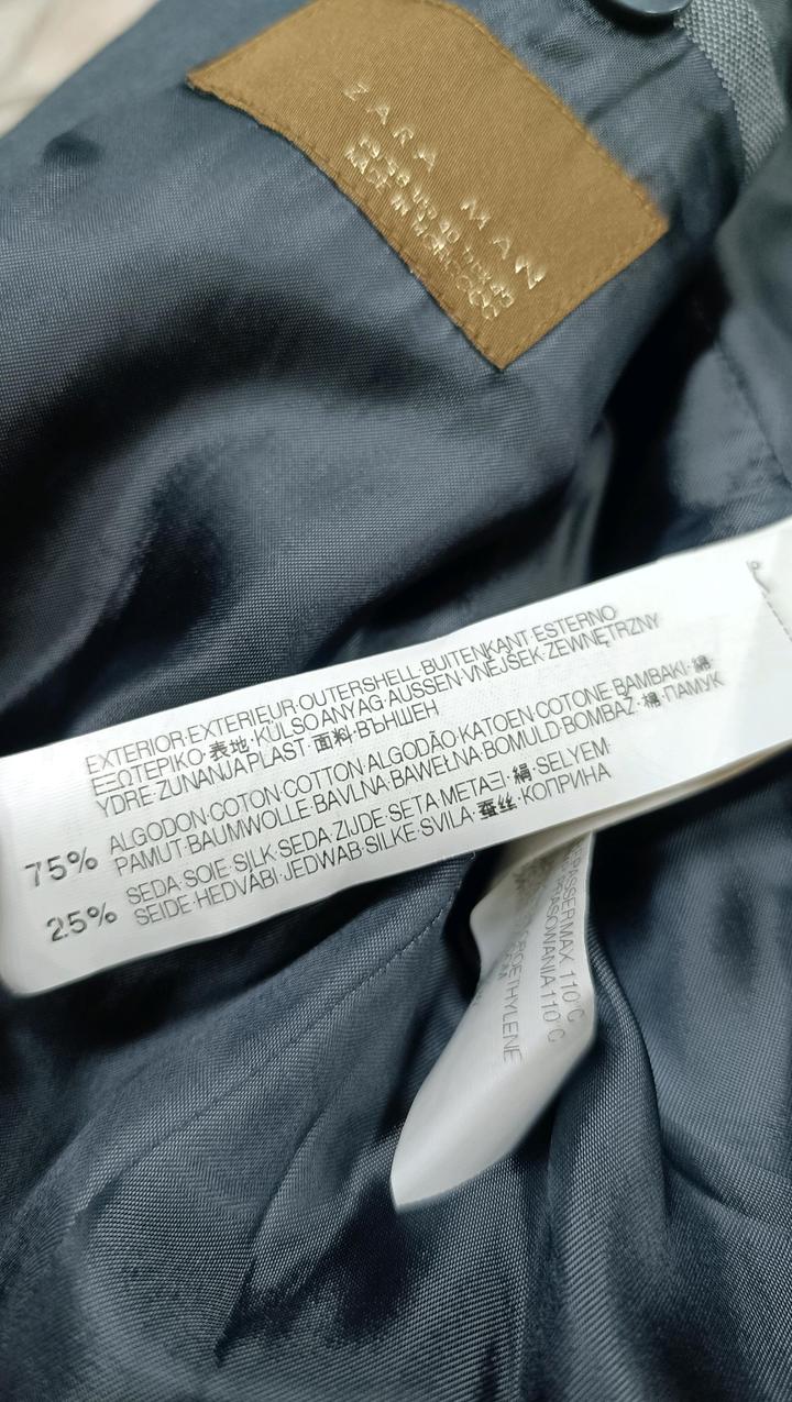Zara , мужской пиджак . Цвет – слегка глянцевый серебристый. ZARA MAN ВНЕШНИЙ СЛОЙ 75% ХЛОПОК 25% ШЕЛК Артикул: 592534