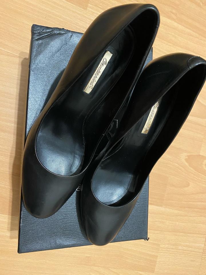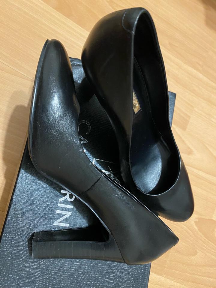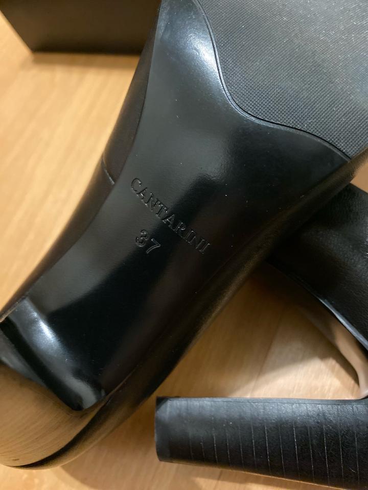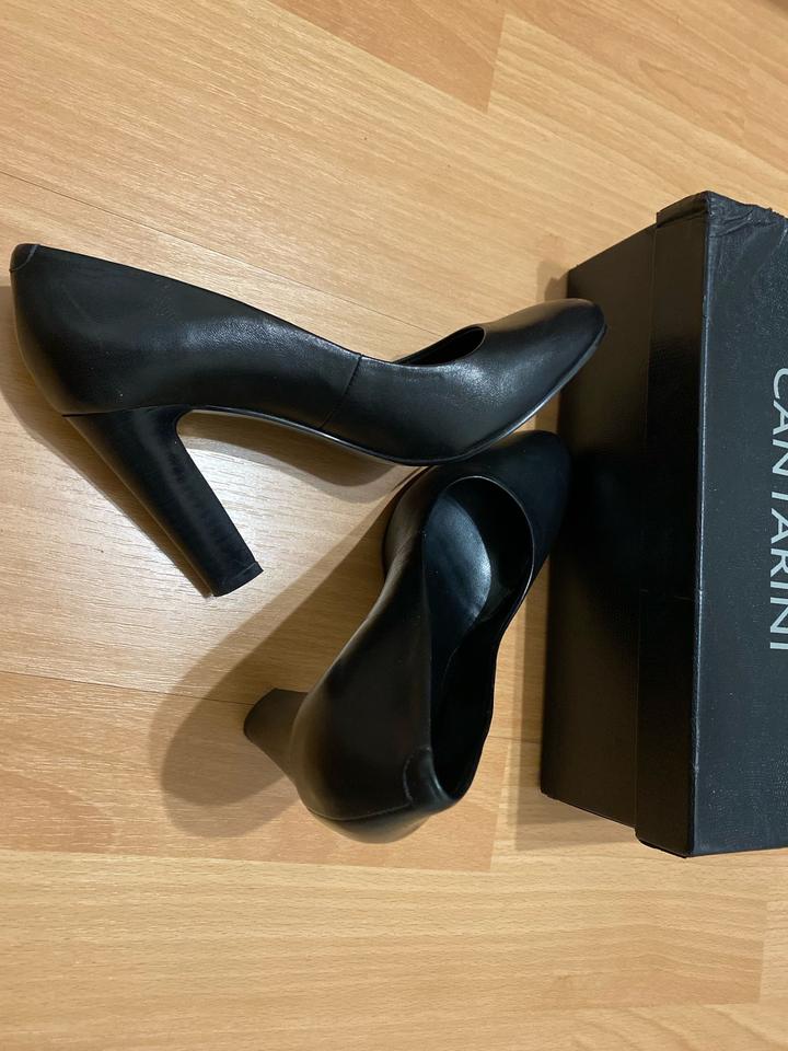 Туфли из натуральной кожи Cantarini, черного цвета. Каблук устойчивый (9см). Мягкая натуральная кожа, мысок изящный закругленный. На правой туфельке с внутренней части есть небольшая царапина (не критично). Классический стиль, уместно в офис и на выход. Артикул: 592542