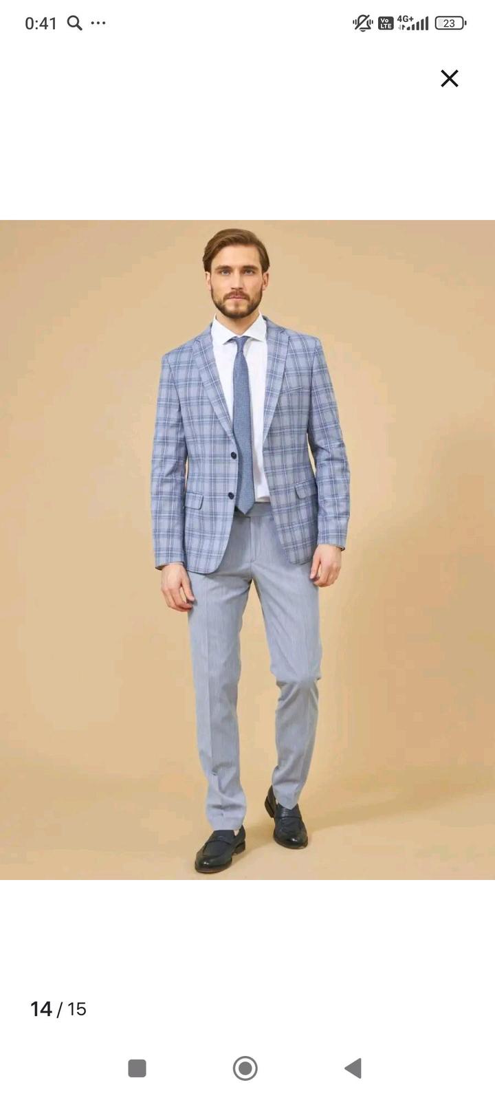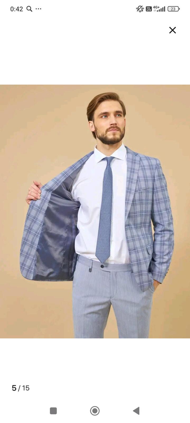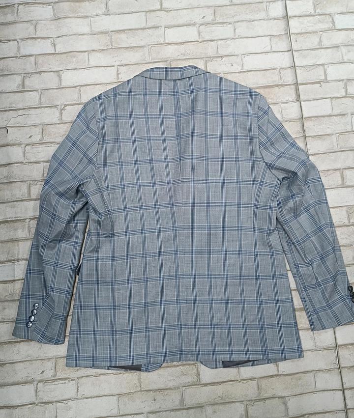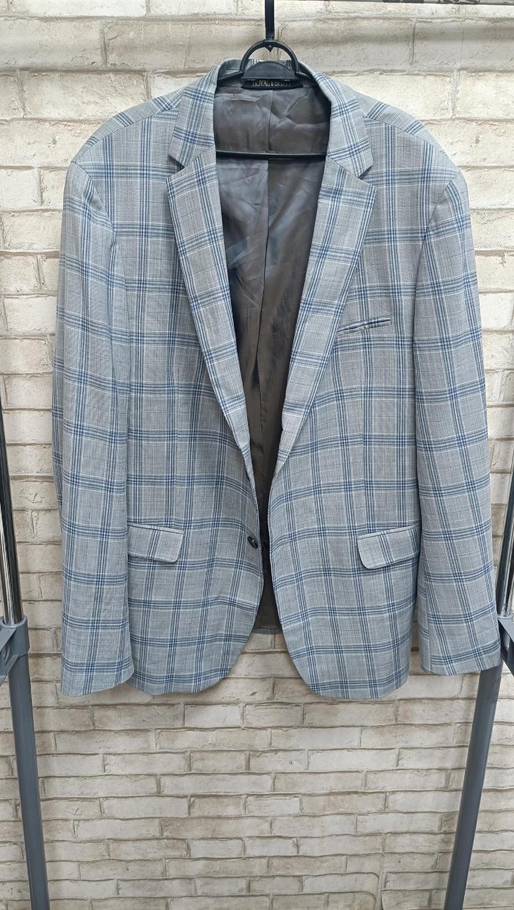Мужской серый пиджак в клетку. В отличном состоянии. Размер: 56, рост 188 (соответствует обхвату груди 112 см и обхвату талии 102 см). Ткань верха (состав): 78 ПЭ, 20 вискоза, 2 эластан Артикул: 592565