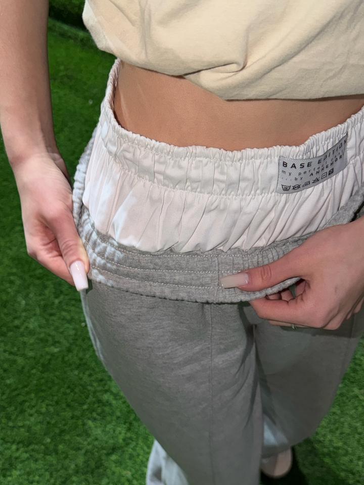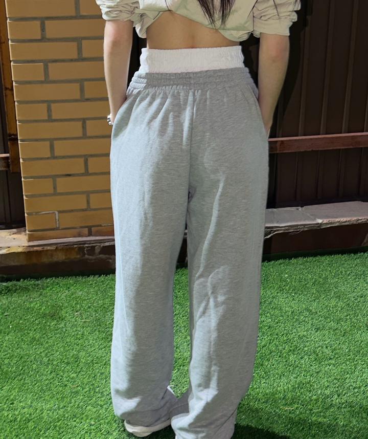 Спортивные серые штаны,ткань двухнитка, без начеса, весна-лето, белая резинка-обманка, высокая талия, рост 165-170 Артикул: 592611