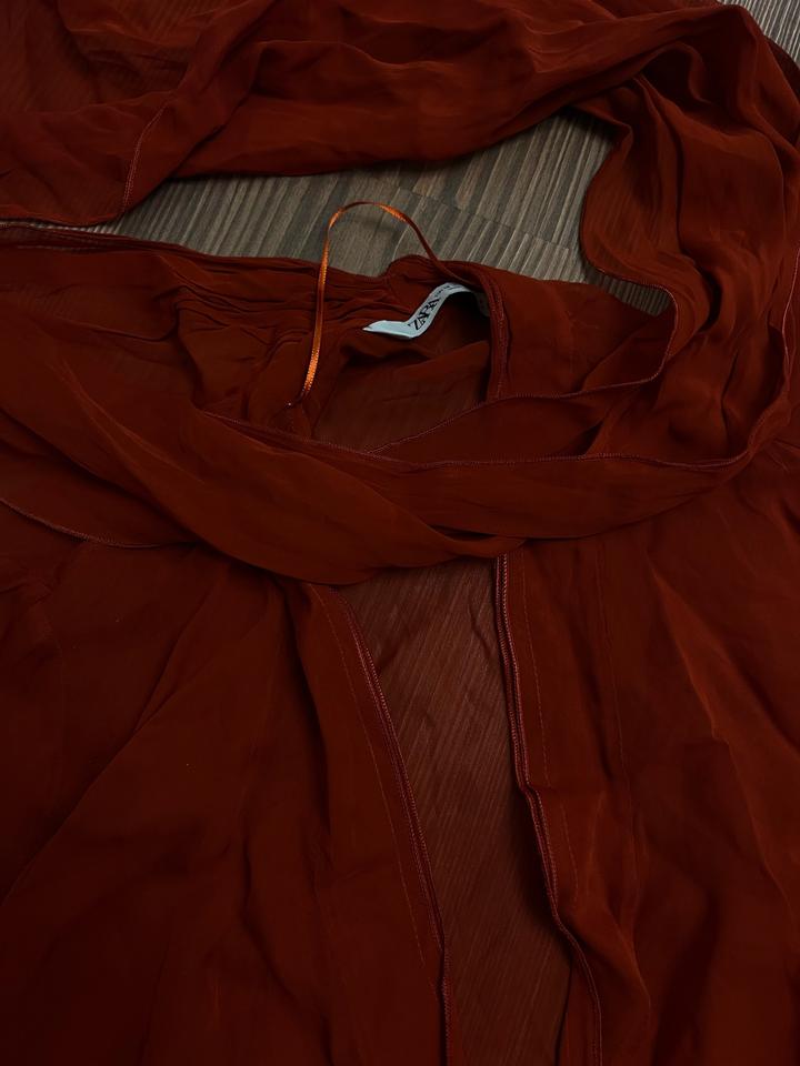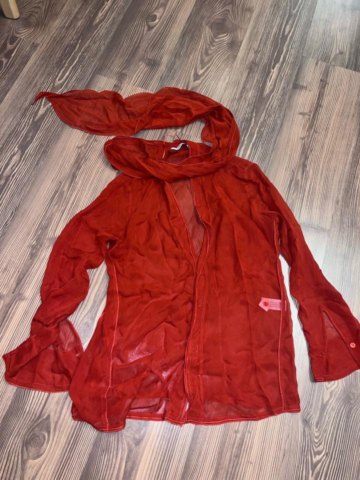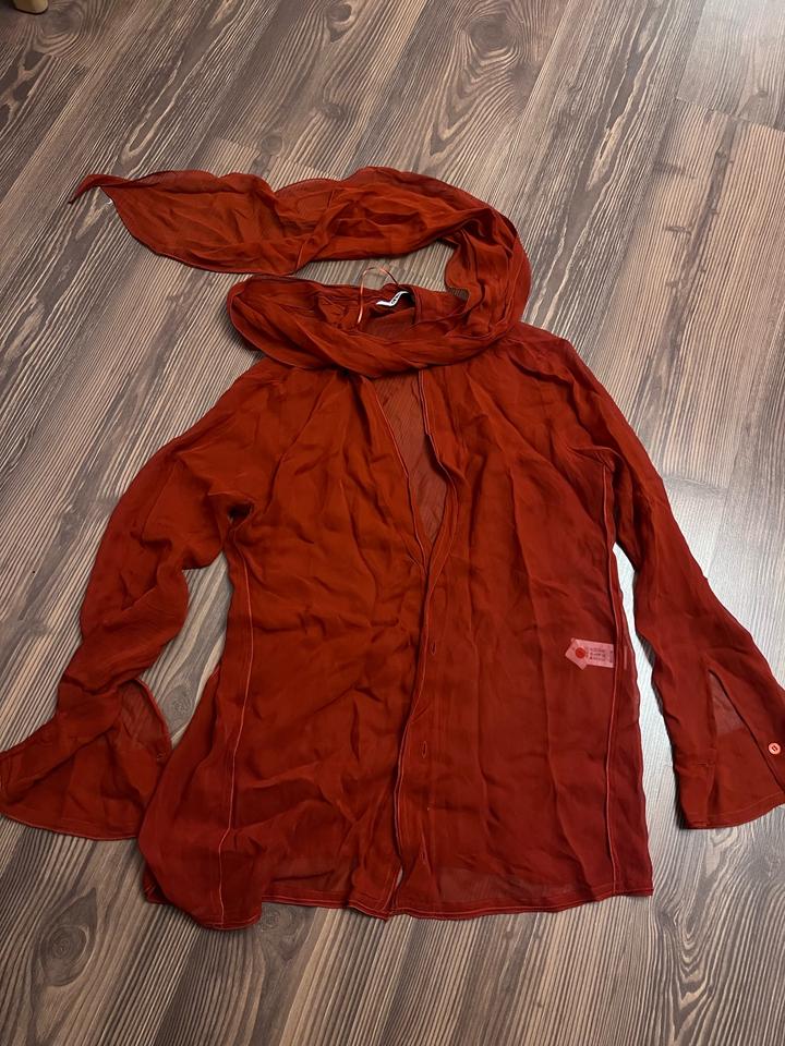 Тонкая утонченная блуза с лентой на горло Красивого красно оранжевого цвета В очень хорошем состоянии Артикул: 592630
