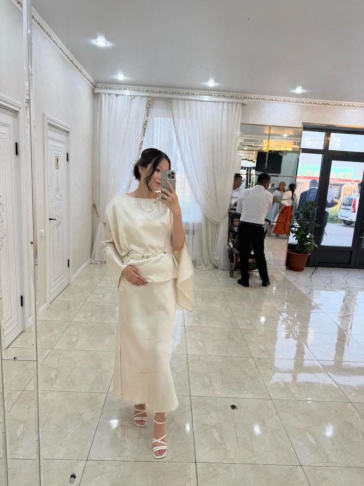 42-44 размер Внутри платье с лямками, и накидка отдельно. Сотуар отдельно покупала, но могу вместе отдать. Одевала только 1 раз (на фото я на 7мес беременности) Артикул: 592670