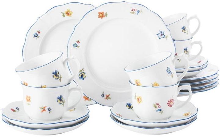 ☘️Seltmann Weiden Sonata Nostalgie☘️ Состоит из: 6 тарелок для завтрака 20 см 6 тарелок для обеда 26 см 6 тарелок для супа 22,5 см 6 кофейных чашек 0,22 л 6 комбинированных блюдец 15 см Серия/коллекция Sonata Nostalgie Материал фарфор Набор из 30 шт. Артикул: 592709