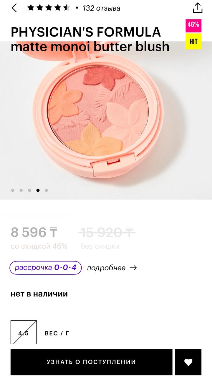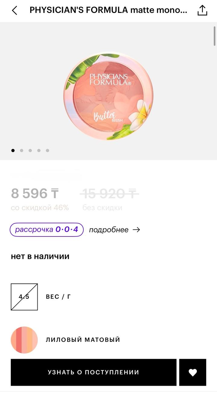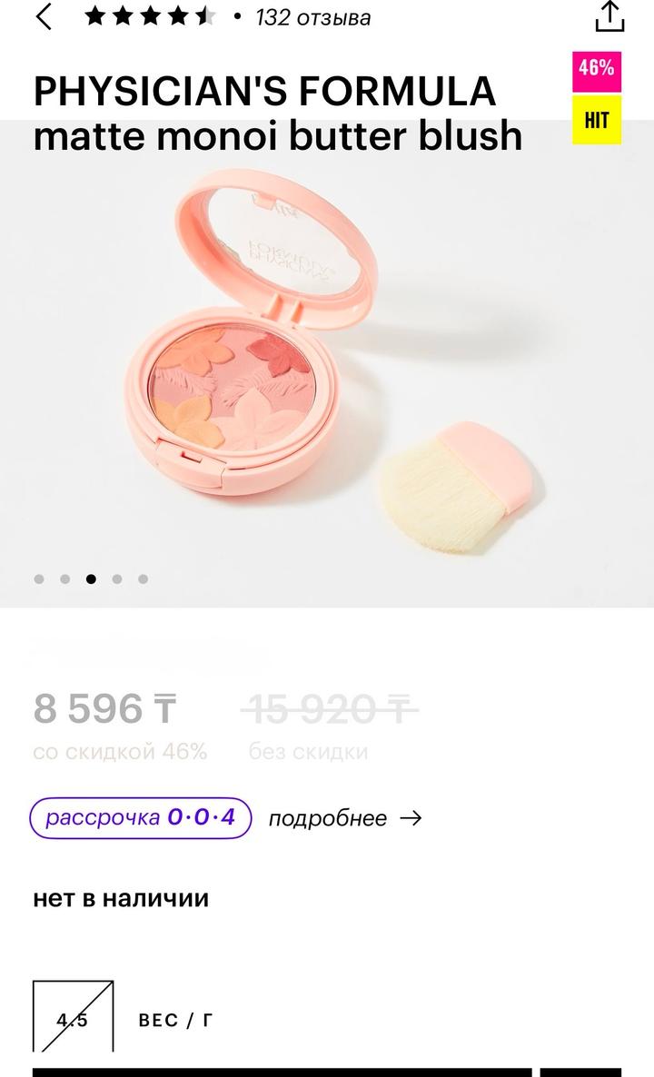 Румяна: PHYSICIAN'S FORMULA matte monoi butter blush Куплены в ЗЯ, оригинал Использованы пару раз , все же не подошёл оттенок, поэтому продаю ✨ В живую цвета более насыщенные и немного темнее, чем на фото с Сайта. Хорошая пигментация, приятный аромат, расход минимальный будет, тк цвета не тусклые и продукт не пылит, что очень важно в сухих текстурах 💝 Артикул: 592718