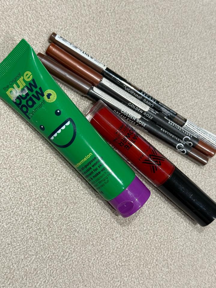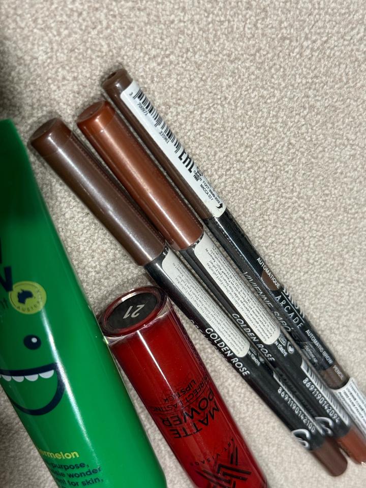 Набор косметики из 5 продуктов + 2 подарочка: 🎁🎁 1 бальзам для губ Pure Pawpaw - вкус клубника 🍓 1 матовая классического холодного красного цвета помада Art Visage #21 💄 2 запечатанных карандаша для глаз #409 и #410 - бренда Golden Rose 1 карандаш запечатанный для бровей #03 - бренда Вивьен Сабо + 2 подарочка в конце на фото ✨ Все куплено в ЗЯ, все новое. Оригинал 100% Фото цвета карандашей для глаз также есть на фото в ленте (коричневый и бронзовый) 🪄🪄 Артикул: 592737