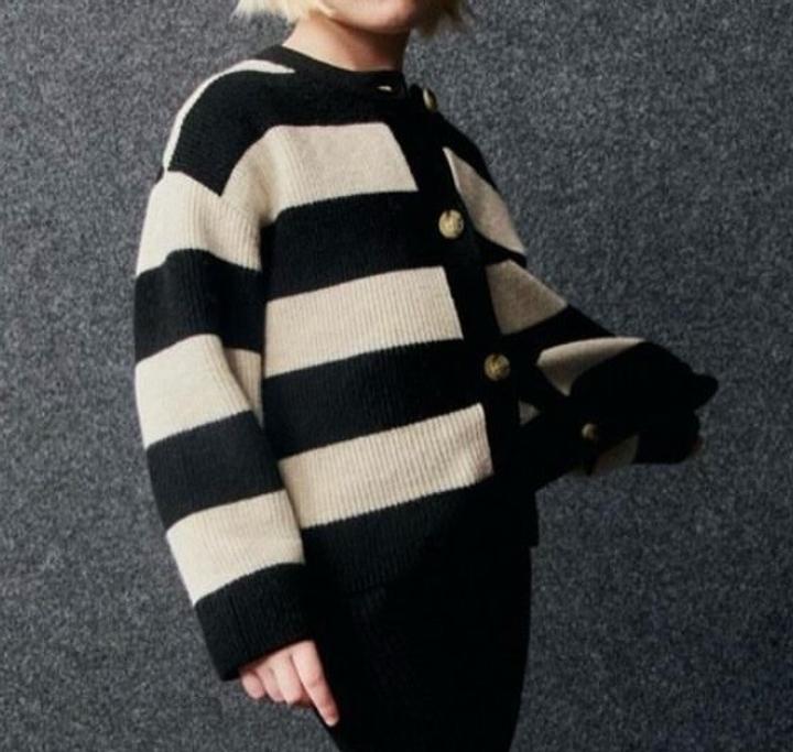 Детский полосатый кардиган на пуговицах с круглым вырезом и длинными рукавами для детей 13-14 лет 164см. В идеальном состоянии, носили пару раз Кардиган из трикотажа Артикул: 592750