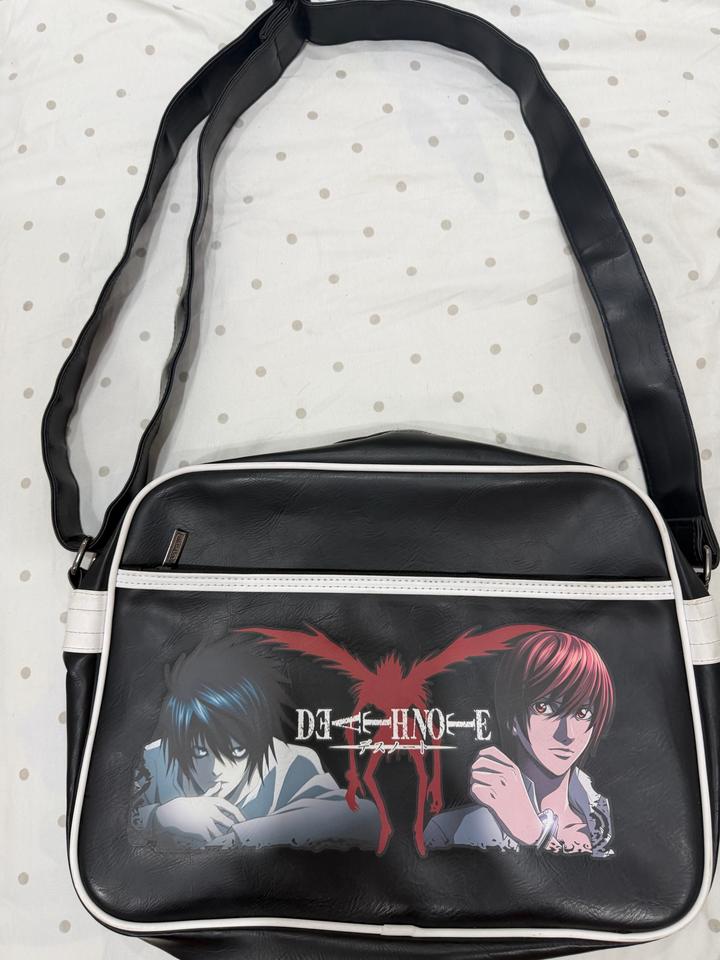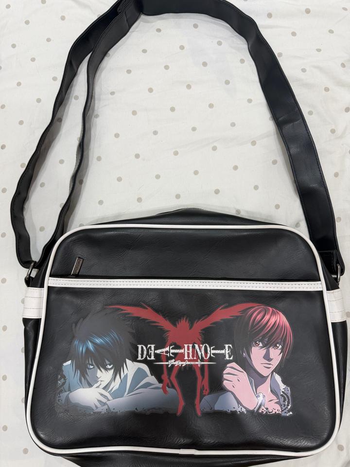 сумка-почтальон messenger bag по мотивам культового аниме «Тетрадь смерти» (Death Note).Персонажи L (Эл), Лайт Ягами и силуэт бога смерти Рюка. Для ценителей аниме, ни разу так и не одели, покупали в Марвине Артикул: 592782