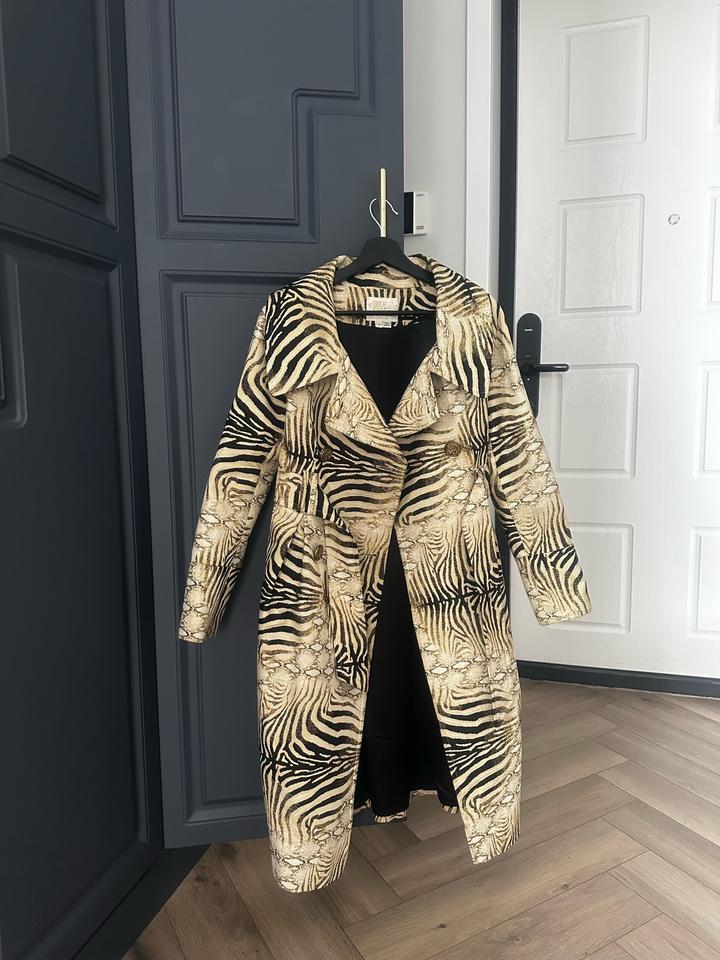 Пальто (плащ, тренч) дизайнерская вещь,, английский бренд, куплен в бутике в Лондоне, материал габардин, с добавлением нитки люрекса актуальный принт, создано красивый силуэт, размер XS, но подойдет на S и M Артикул: 592812