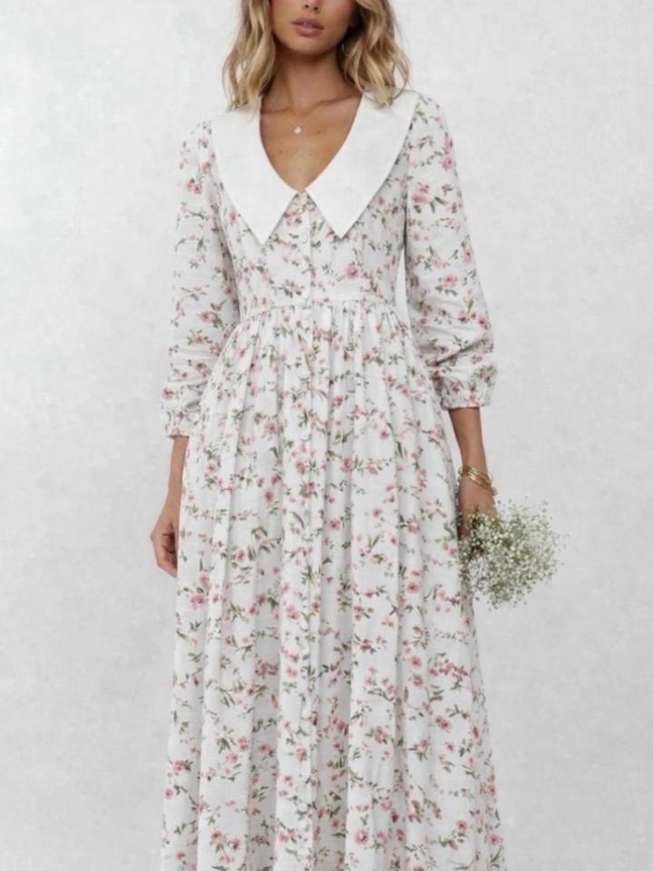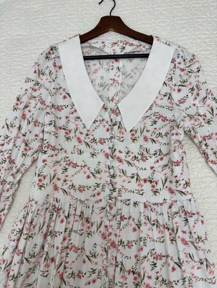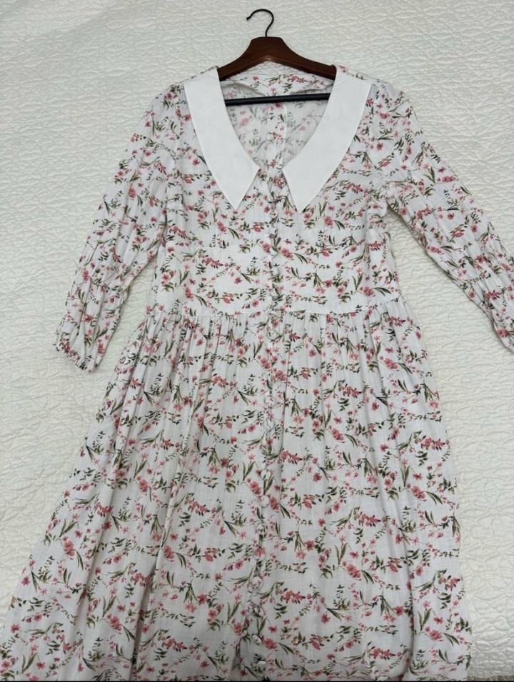 Платье длины Макси из льна Цветочный принт и белый воротник Был сшит на заказ Размер L Артикул: 592866