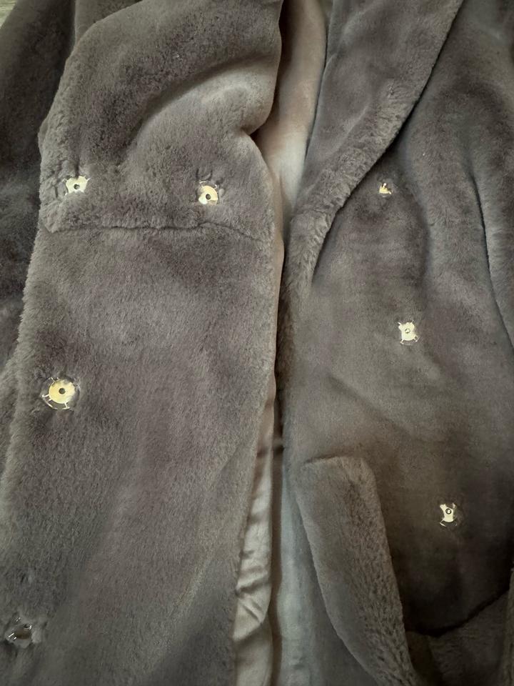 Брала дочке, одевала в 14 или 15 лет пару раз. Очень классная, натуралка, мутон. Мягкая приятная, очень теплая. Покупала ооочень дорого, правда. Цвет благородный графит Артикул: 592886