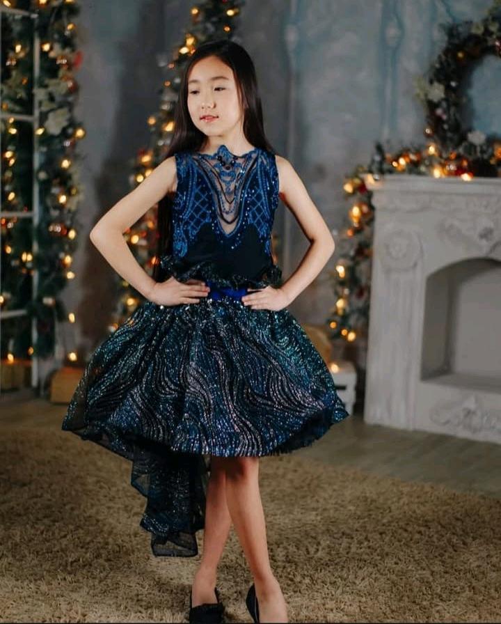 Эффектное, сценическое Состояние: отличное, надевалось 1-2 раза Размер: 134-140 (8-9 лет) Рост модели на фото 140см Платье идёт как комплект: боди (верх с декоративной отделкой), нижняя пышная юбка (чёрная, для объёма), верхняя юбка с подолом, расшитая камнями Замеры (по изделию): Обхват груди: 64см Талия: •верхняя юбка 66см •нижняя юбка 60-62 (есть небольшая растяжимость) Длина юбки с подолом 70см Артикул: 592889