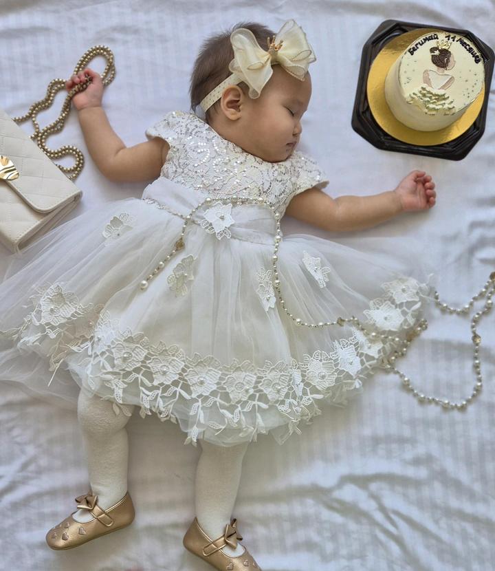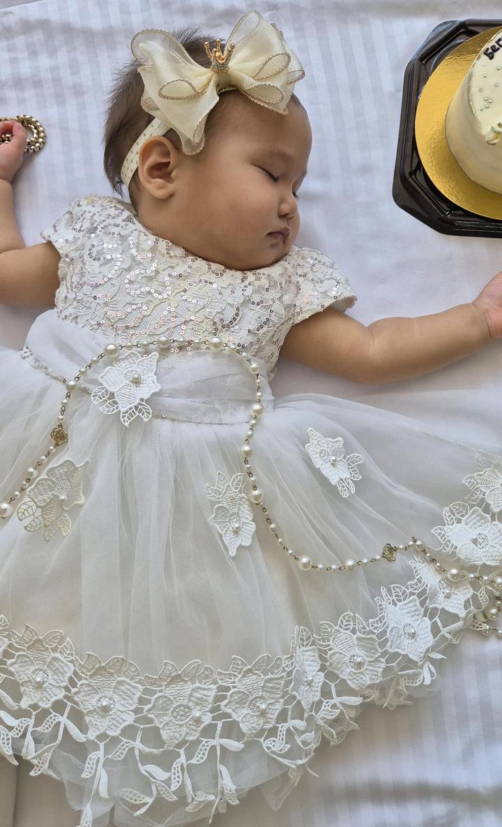 Платье для девочки 12 - 18 мес. На рост 80-98см. В комплекте пинетка золотистая под платье. Артикул: 592967