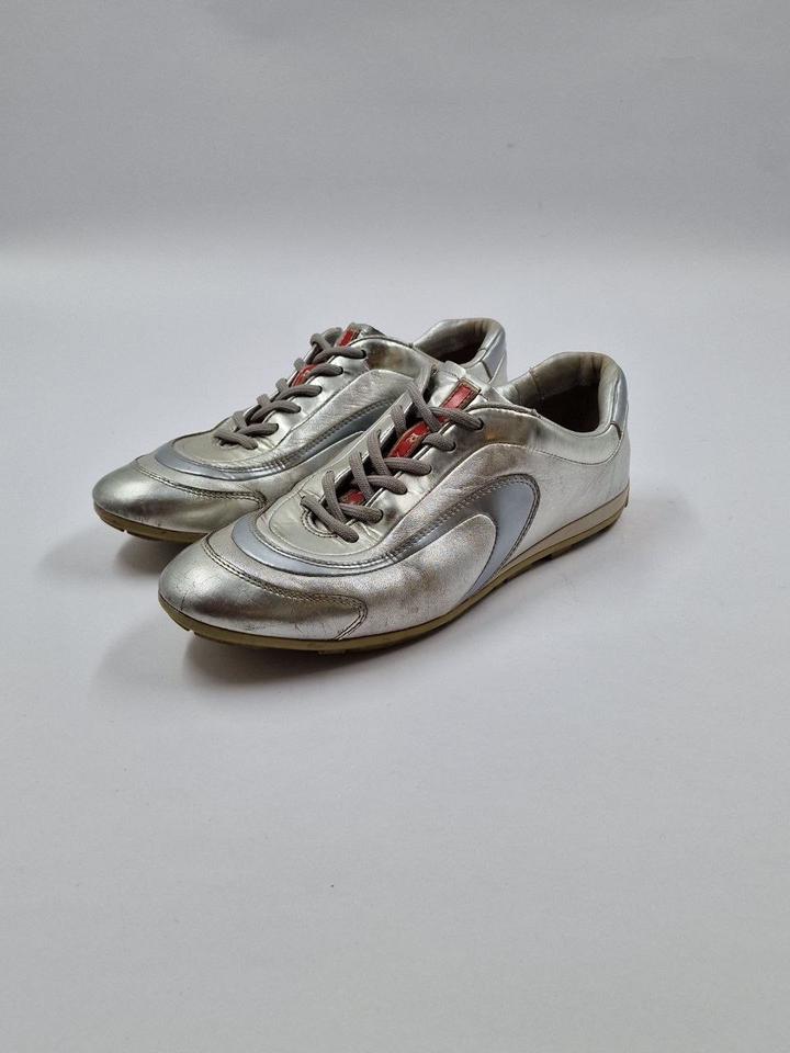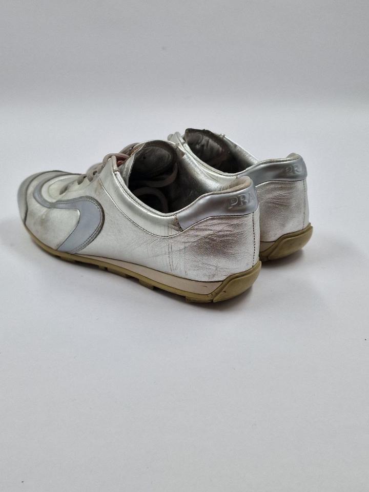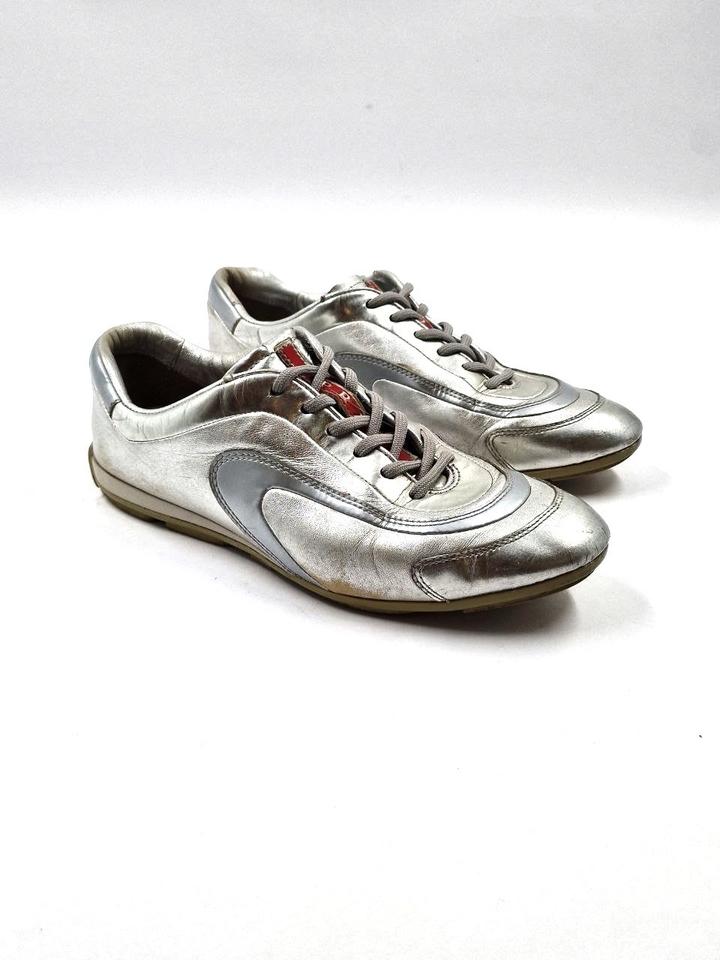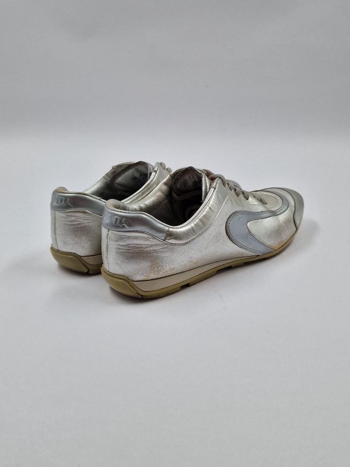 ВИНТАЖНЫЕ кроссовки PRADA из серебристой лакированной кожи Размер: 36,5 EU В очень хорошем состоянии / Пожалуйста, обратите внимание: общие признаки износа, местами заметны следы кожи. Артикул: 592977