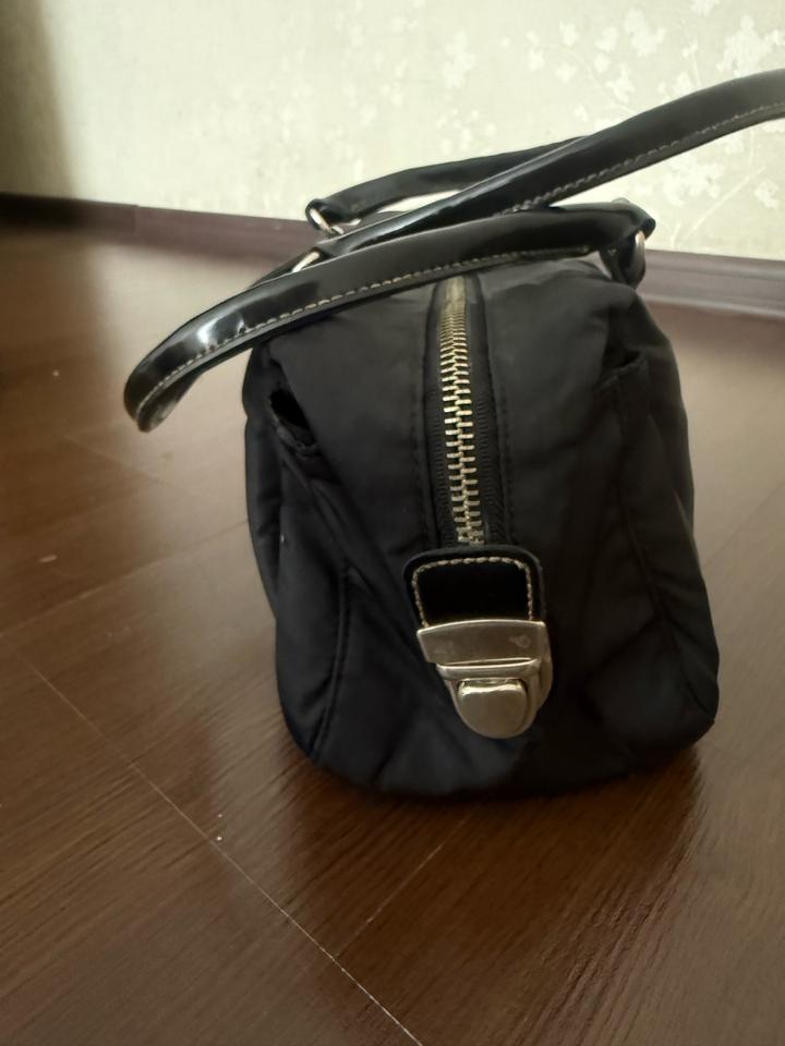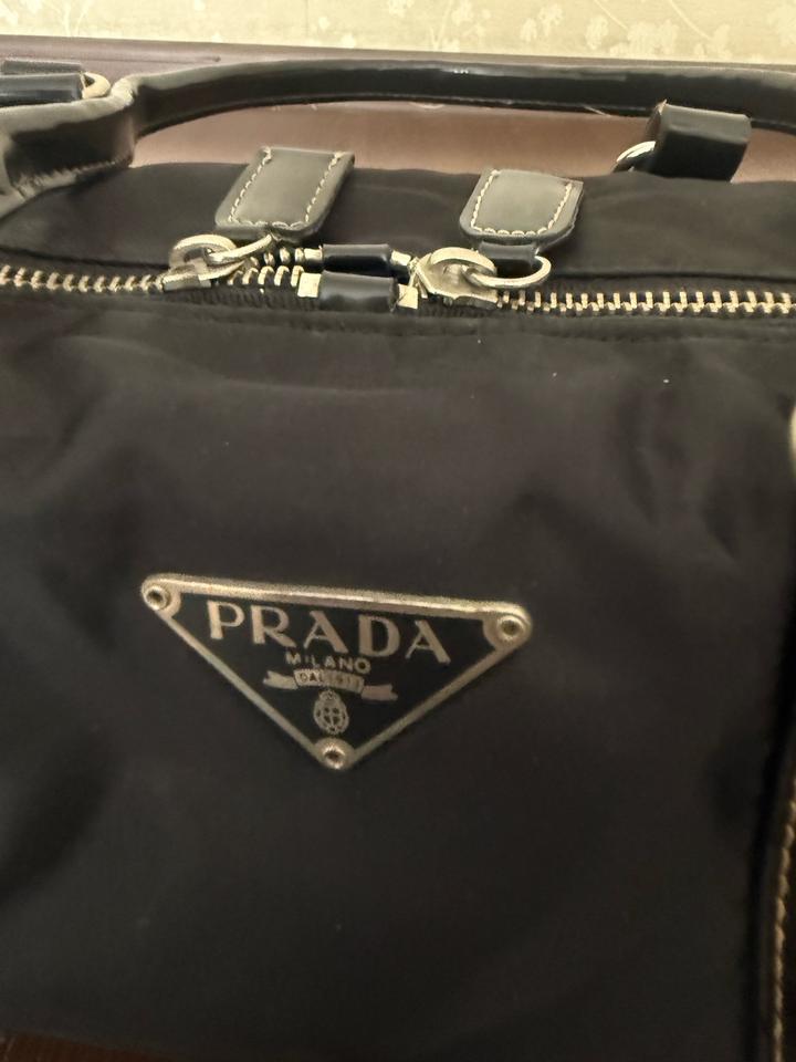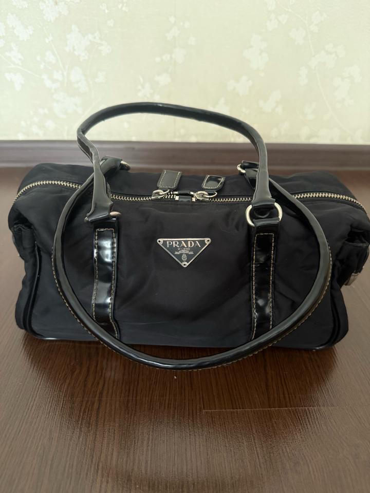 Износостойкий нейлон с отделкой из кожи (часто Saffiano или гладкая кожа). Логотип: Характерный металлический треугольник Prada Milano. Тип: Сумка для повседневной носки или небольшая дорожная сумка (Duffel/Boston bag). Покупала в Париже за +7### ### ## ##м состоянии Артикул: 593057