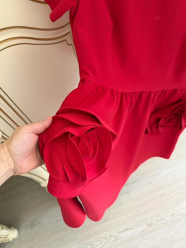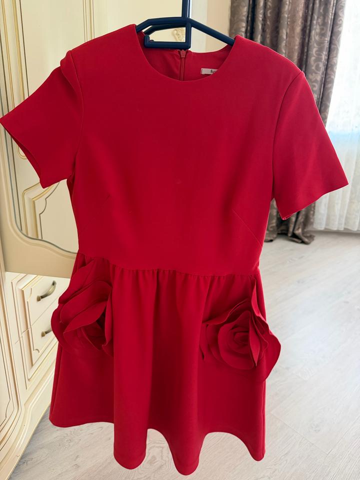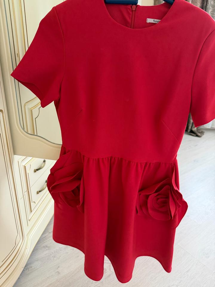 На выход 1 раз Турецкого производства платье красного цвета на карманах цветок Очень красиво смотрится Артикул: 593126