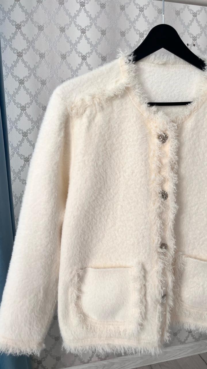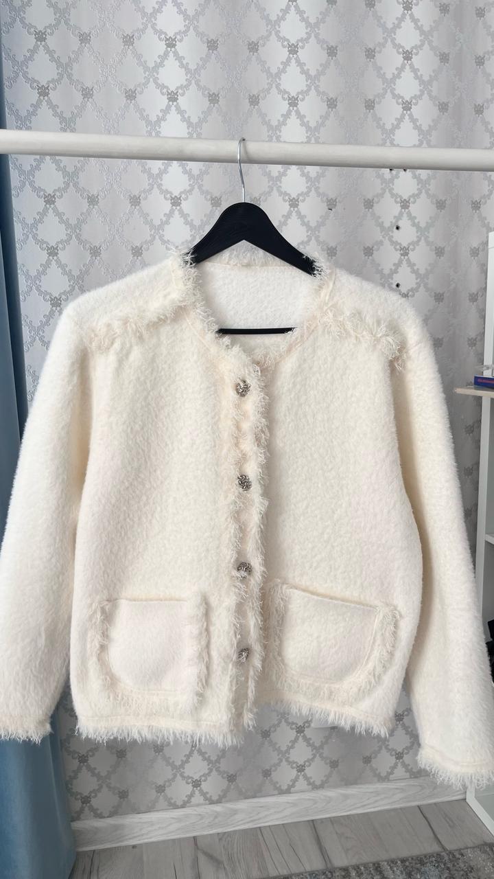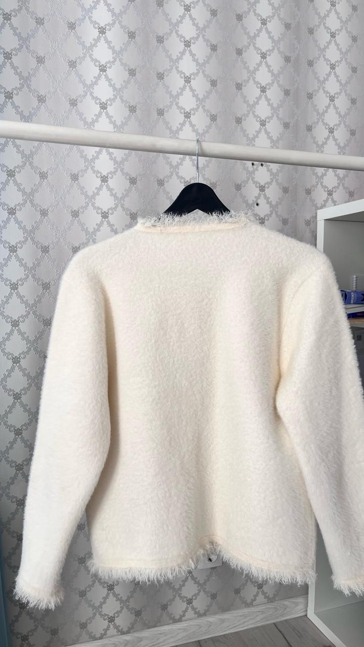 Продам стильный молочный кардиган 🤍 Надевала всего пару раз, состояние отличное, без дефектов. Мягкий и приятный материал, пушистая вязка (трикотаж с добавлением шерсти и акрила), очень уютный и красиво смотрится. Артикул: 593140