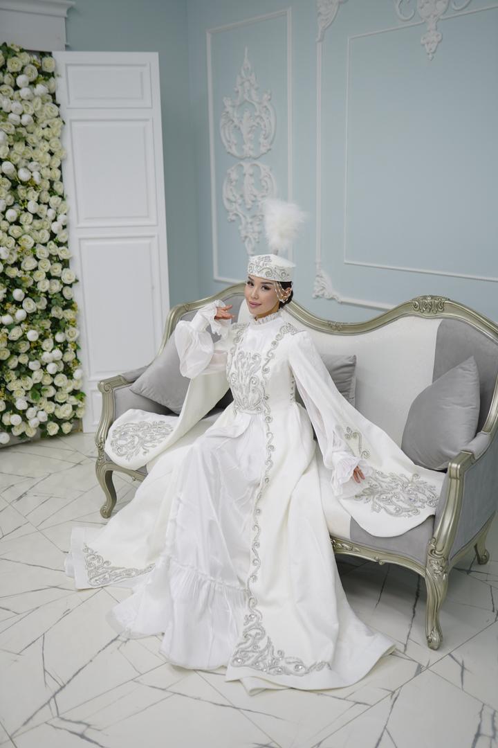 Платье в отличном состоянии, в комплект входит комзол, база платье, саукеле , полностью ручная работа , размер 42-48 Артикул: 593143