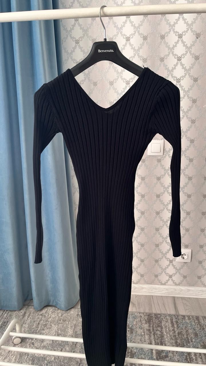 стильное черное трикотажное платье. состояние отличное, без дефектов. Мягкий и приятный к телу трикотаж в рубчик, хорошо тянется и красиво подчеркивает фигуру. Подойдет как на каждый день, так и на вечерний выход. Артикул: 593156