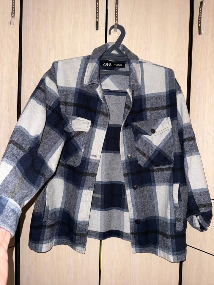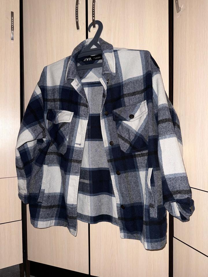 Теплая шерстяная рубашка синего цвета ЗараM
