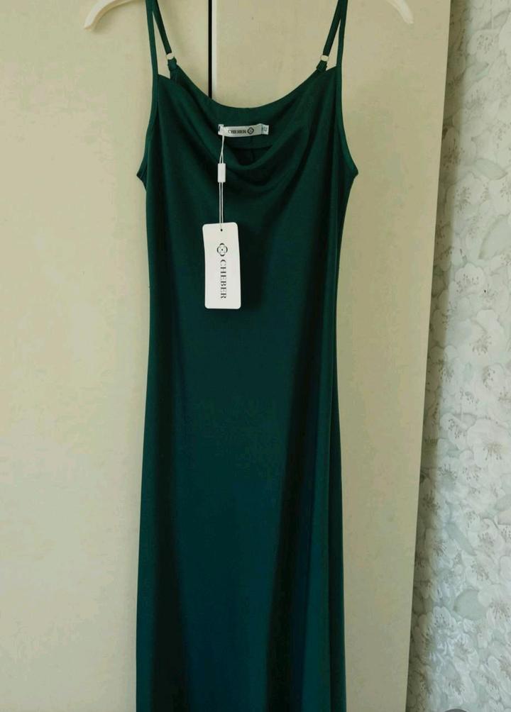 Зелёное атласное платье, новое с биркой. Простое, без декора, смотрится аккуратно и стильно Артикул: 593216