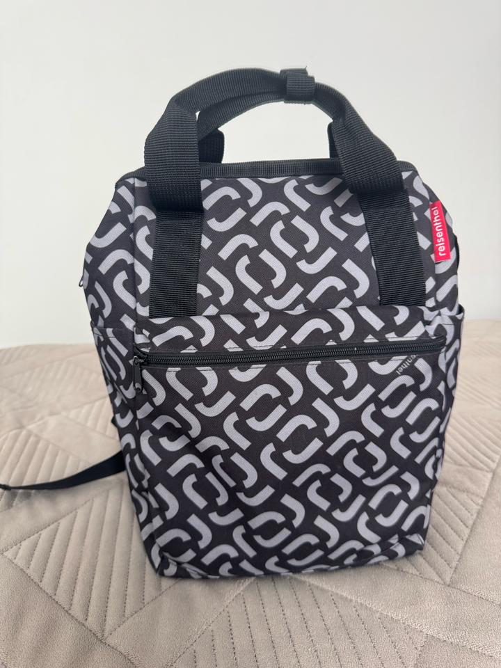 Рюкзак-сумка универсальная Reisenthel. Б/у в отличном состоянии. Использовала как мамский рюкзак. Высота 40 см. Ширина 26 см. Глубина 14 см. 650 гр. общем 12 литров. Водоотталкивающий полиэстер. Есть ремешок, чтобы крепить к чемодану во время поездок. Артикул: 593226