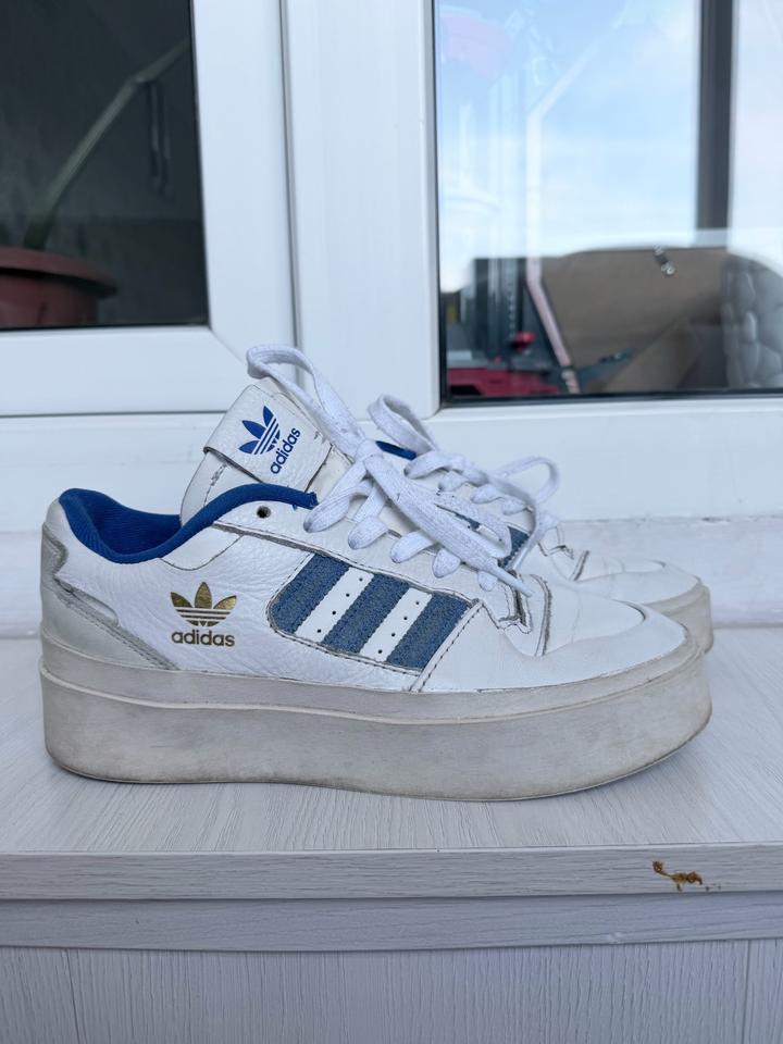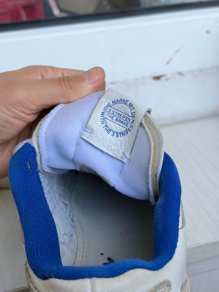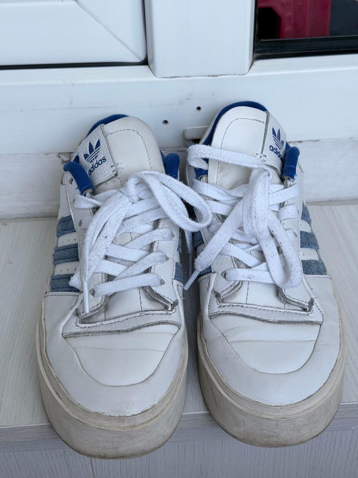 Белые кожаные кроссовки adidas Внутри мягкое наполнение , подошва из толстой мягкой резины. Очень клево с широкими и расклешенными джинсами Артикул: 593247