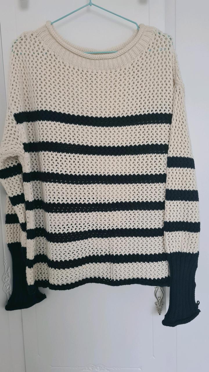 Свитер оверсайз. Цвет: Белый x темно-синий. Размер XS-S. Использован 1 раз, состояние отличное. Артикул: 593285
