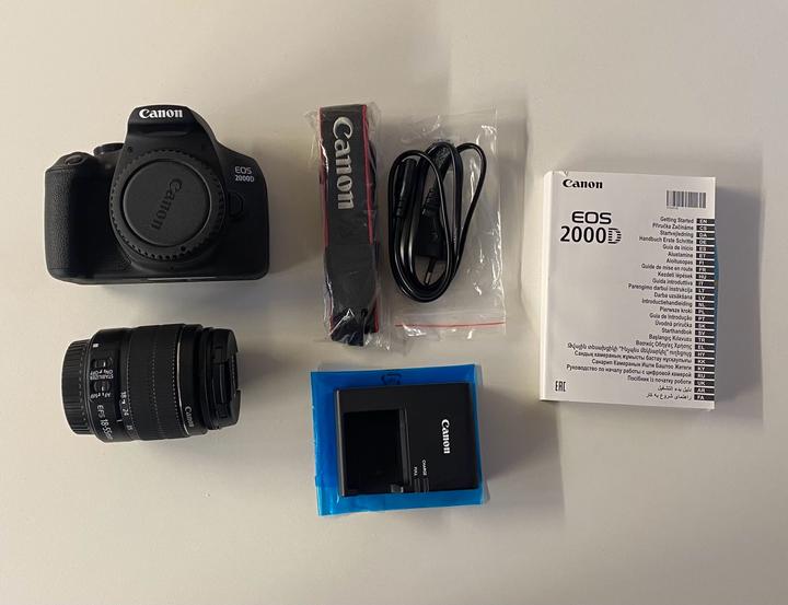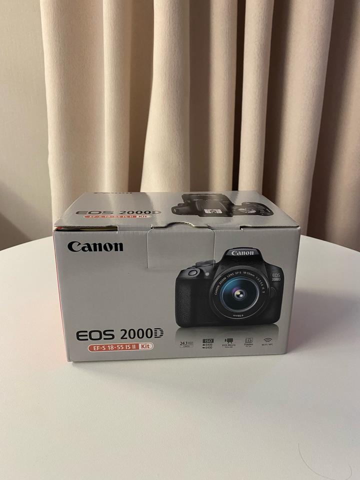 Фотокамера Canon EOS 2000D Kit EF-S 18-55 IS II черный Фотоаппрат в идеальном состоянии, использовали ровно один раз для домашней фотосессии, остальное время лежал в коробке Полная комплектация с коробкой, в подарок карта памяти и стильная сумках-переноска Артикул: 593289