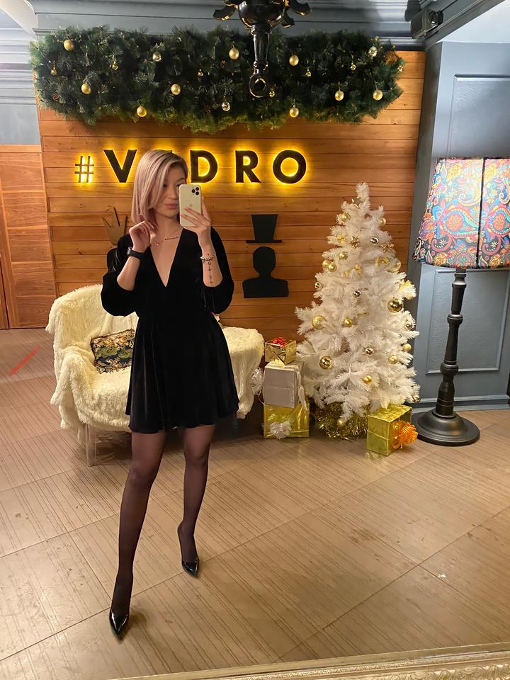 Коктейльное, черное платье из бархата с небольшим вырезом и на резиночке. Размер s, подойдет на 42/44/46 Артикул: 593293