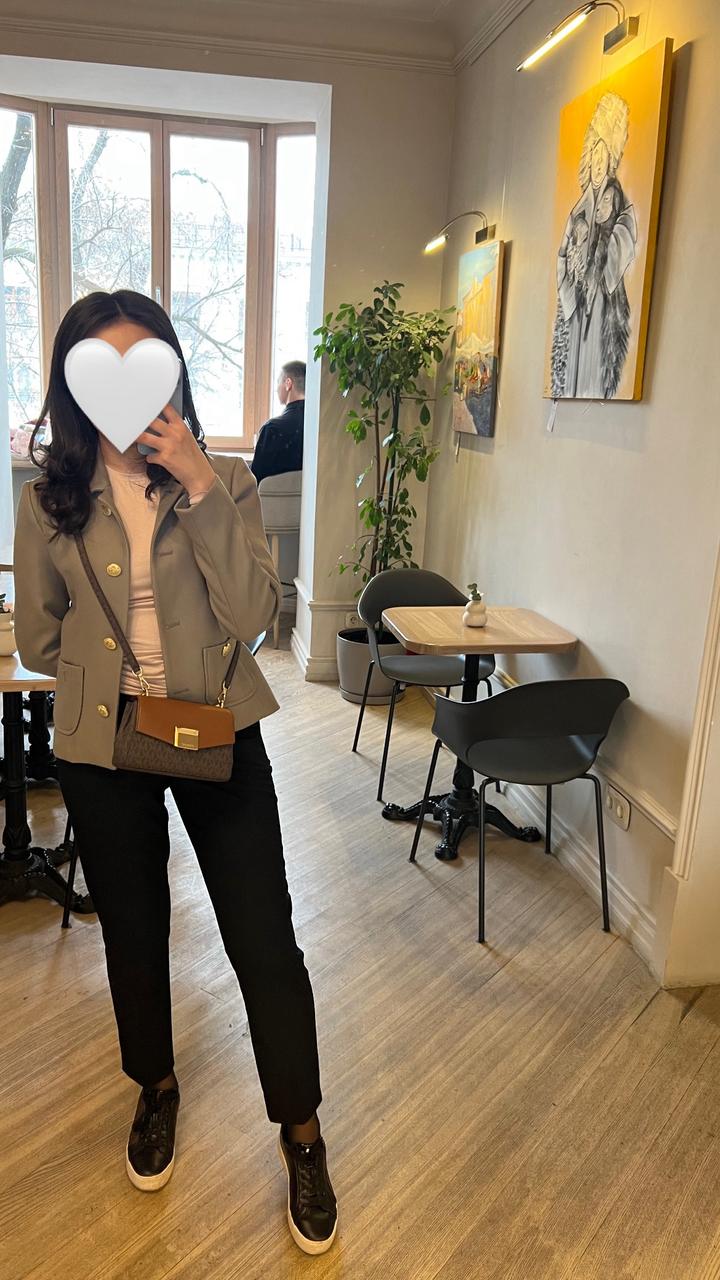 Пиджак от турецского бренда Karol, из плотной ткани, приталенный, цвет оливковый, размер указан М подойдет больше для S Артикул: 593433
