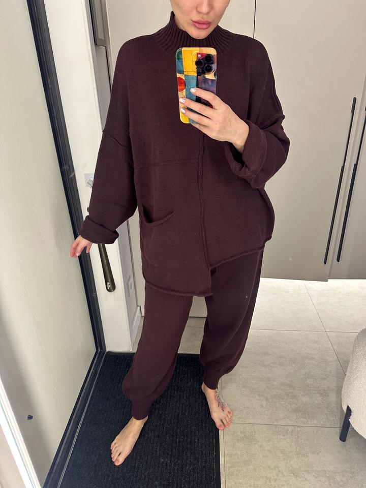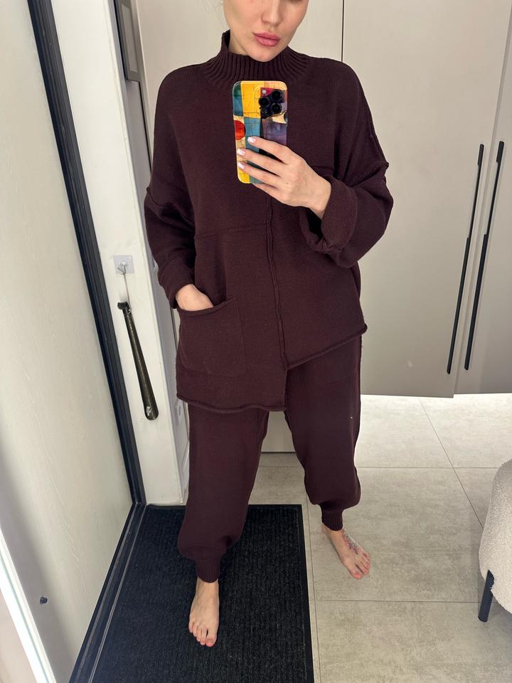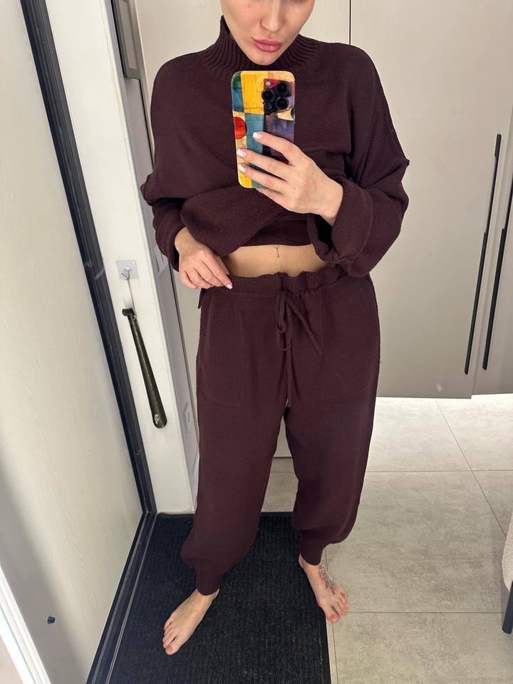 Теплый костюм Оверсайз 20% шерсть 80% акрил Без следов носки Штаны на завязках Подойдет на S,M,L Артикул: 593453