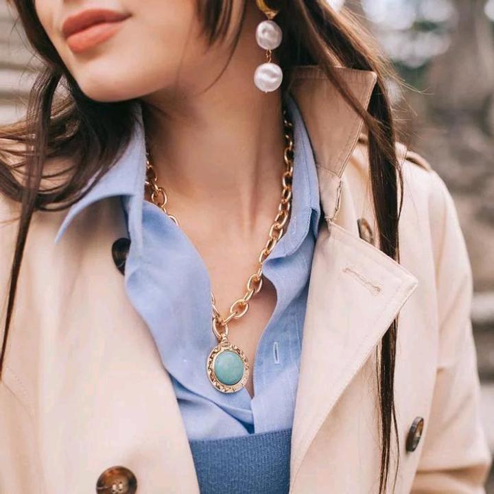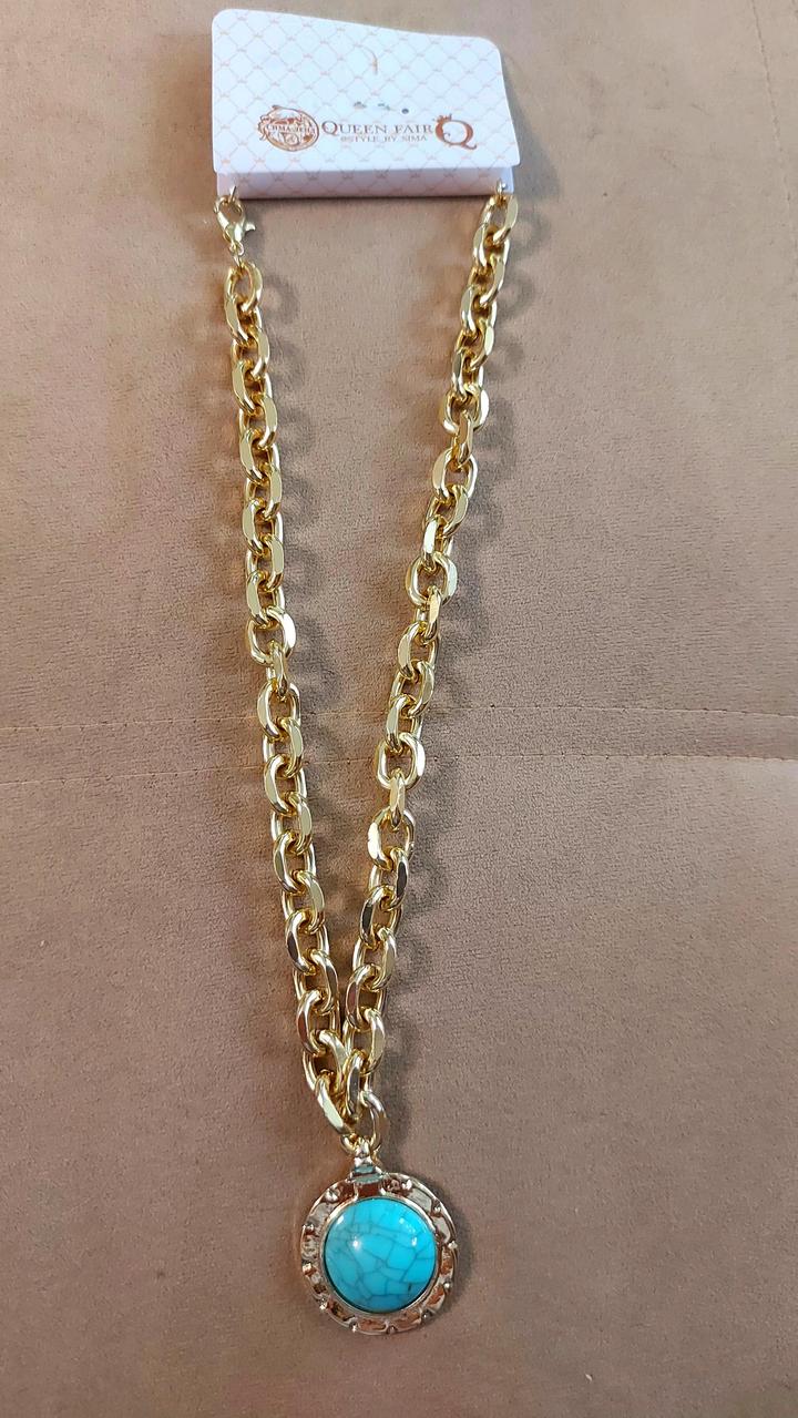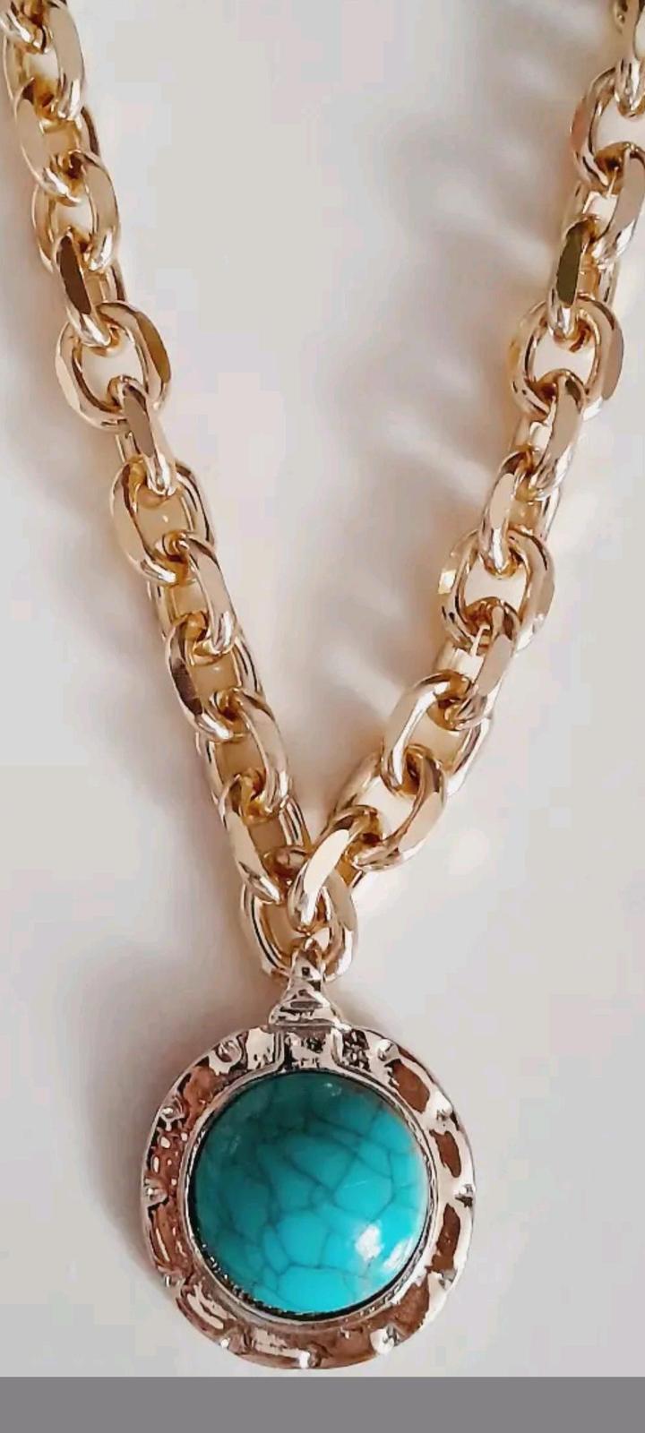 Распродажа остатков. Цепь с кулоном. Камень под бирюзу. Артикул: 593455
