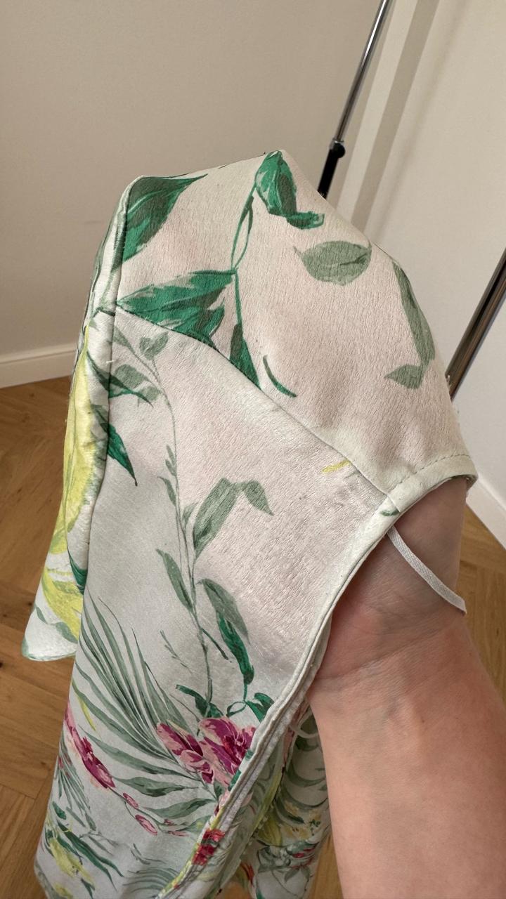 Очень классная накидка Oysho. Можно на beachwear, можно в город с джинсами застилизовать в Бохо. Продаю, потомучто слишком много накидок, а так любила ее большой любовью. Ткань там интересная такая с эффектом шелка или бархата, и от этого появляются еле заметные катышки (в носке не видно). На последнем фото постаралась отобразить. Артикул: 593458