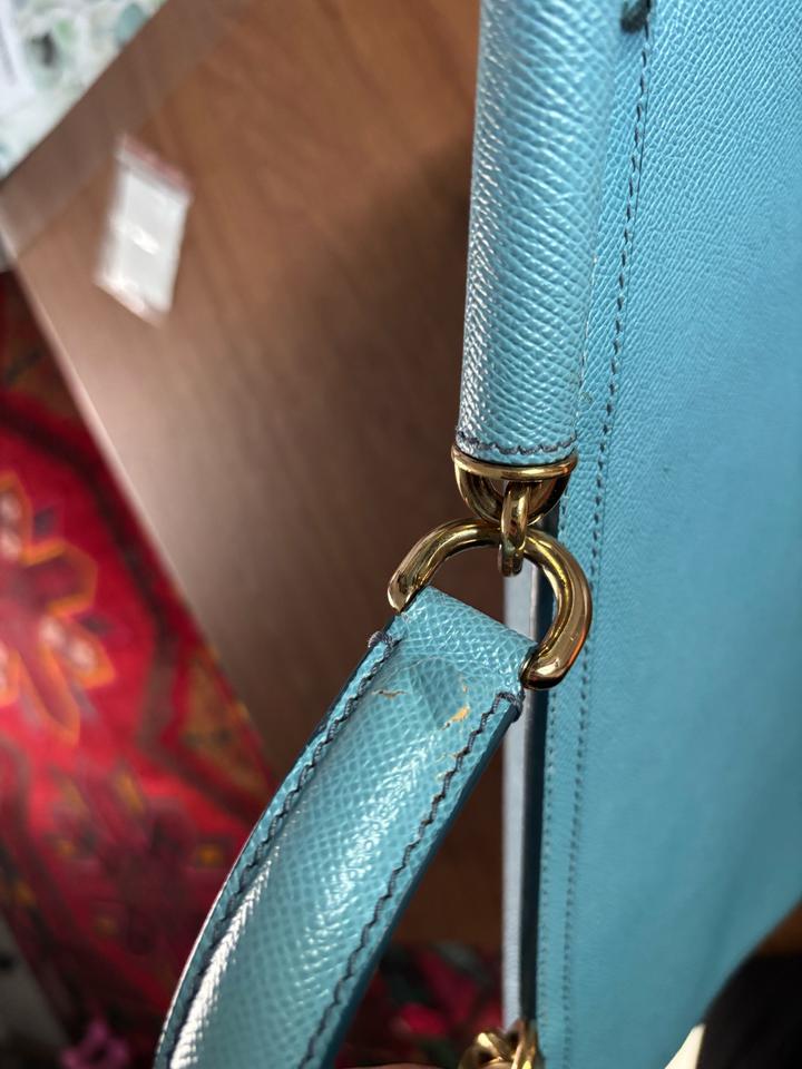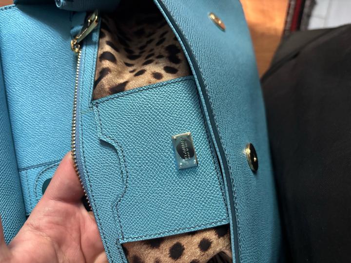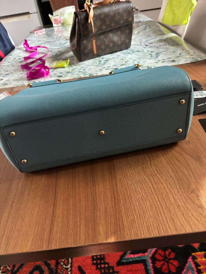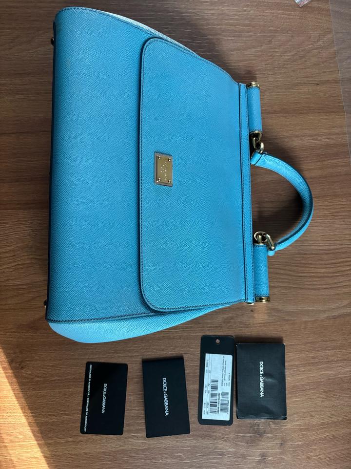 Оригинальная сумка цвета морской глади Италии,Dolce and Gabanna, носили пару раз,деффект на ручке из за этого цена снижена,не щатасканная кроме деффекта на ручке. Полностью оригинал,в чехле есть веревка на плечо Артикул: 593505