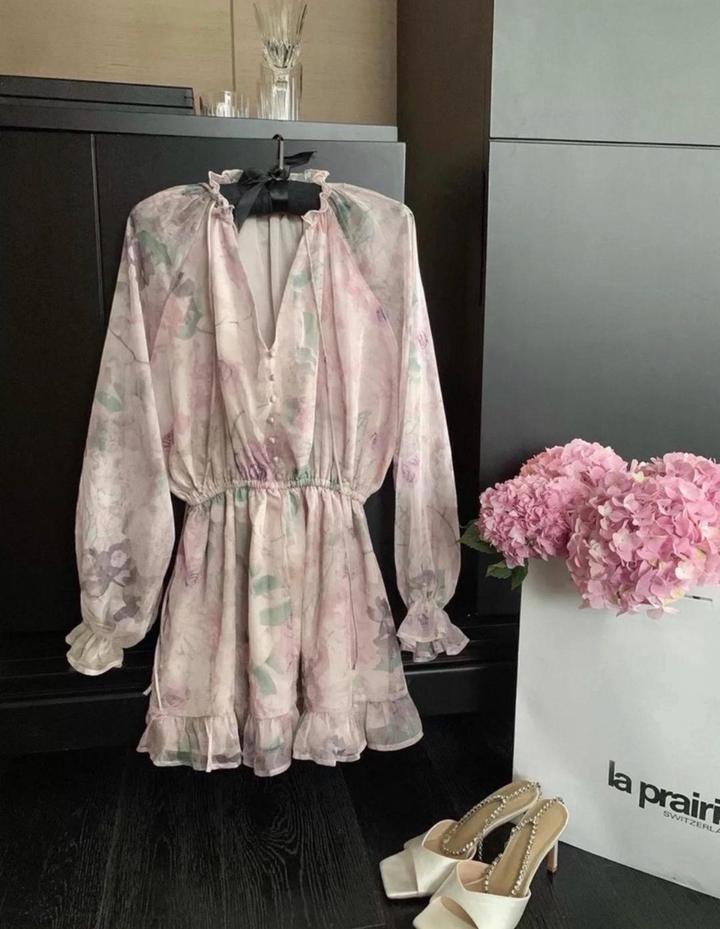 Нежно розовое платье с цветочным принтом в комплекте есть шорты Артикул: 593556