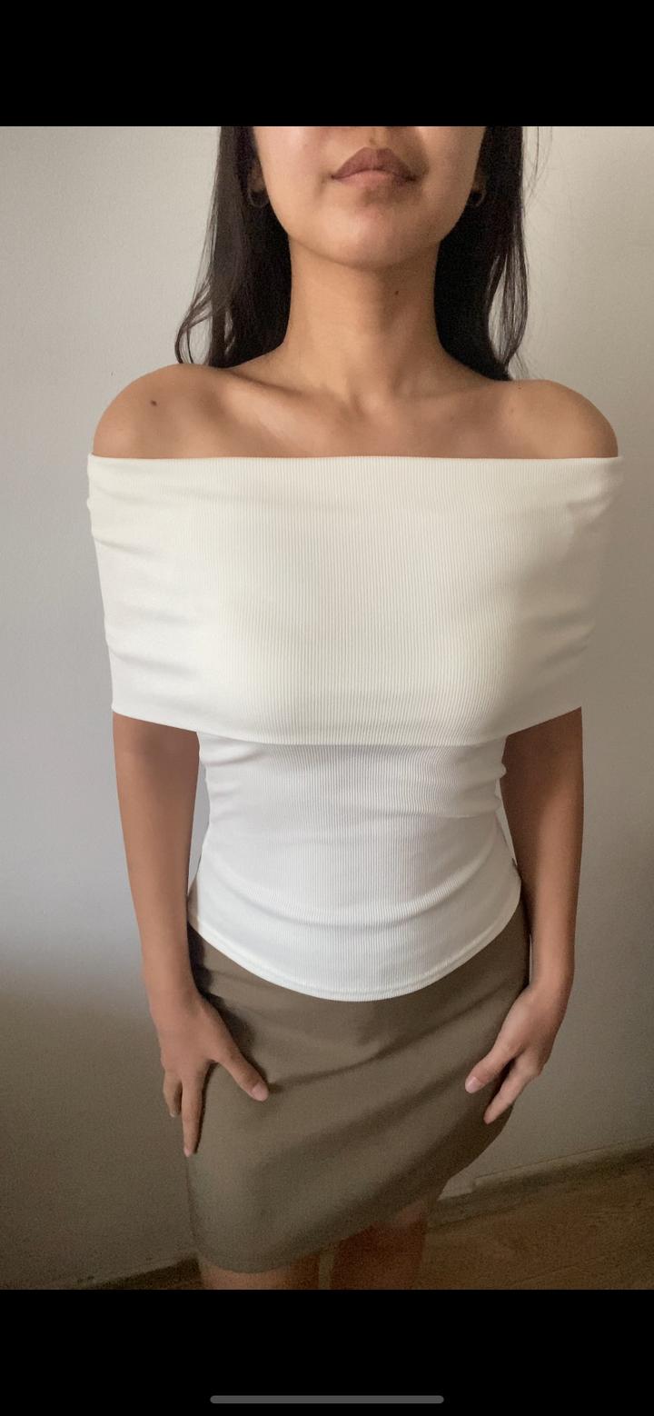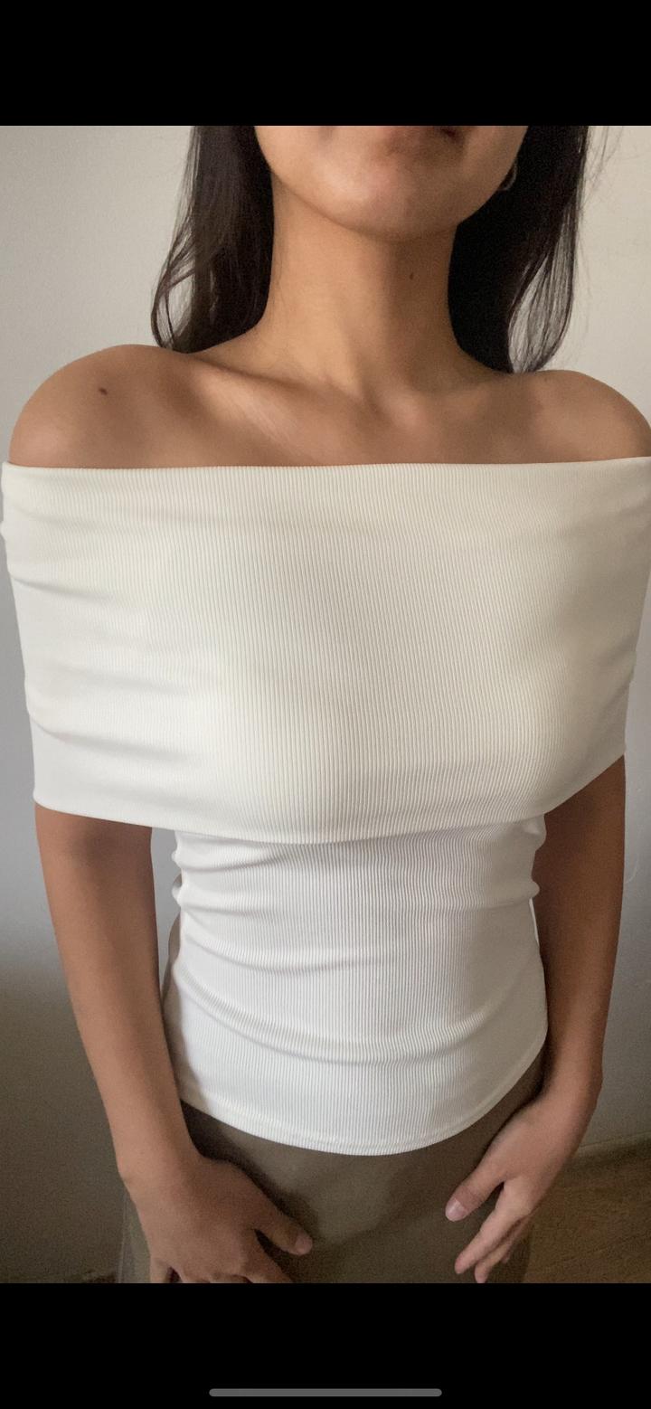 Шикарная футболка с открытыми плечами в наличии в безупречном белом цвете🤩потрясающее качество, очень приятный материал к телу💣 размер на 42, 44! Можно и на выход и на повседневку🥰 цена 4000тг🔥новые вещи с этикетками‼️ Артикул: 593561