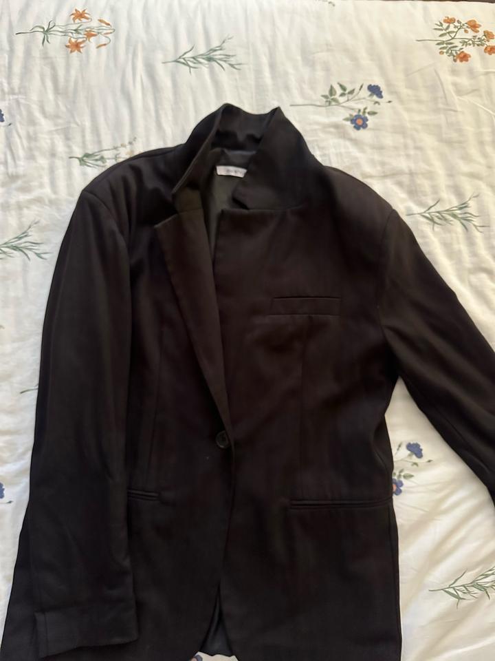 Пиджак, производство Турция, покупала года два назад в магазине MSQ. Камера почему то дает оттенок на фото, но ничего такого нет. Пиджак чисто черный. Носила нечасто. Артикул: 593579