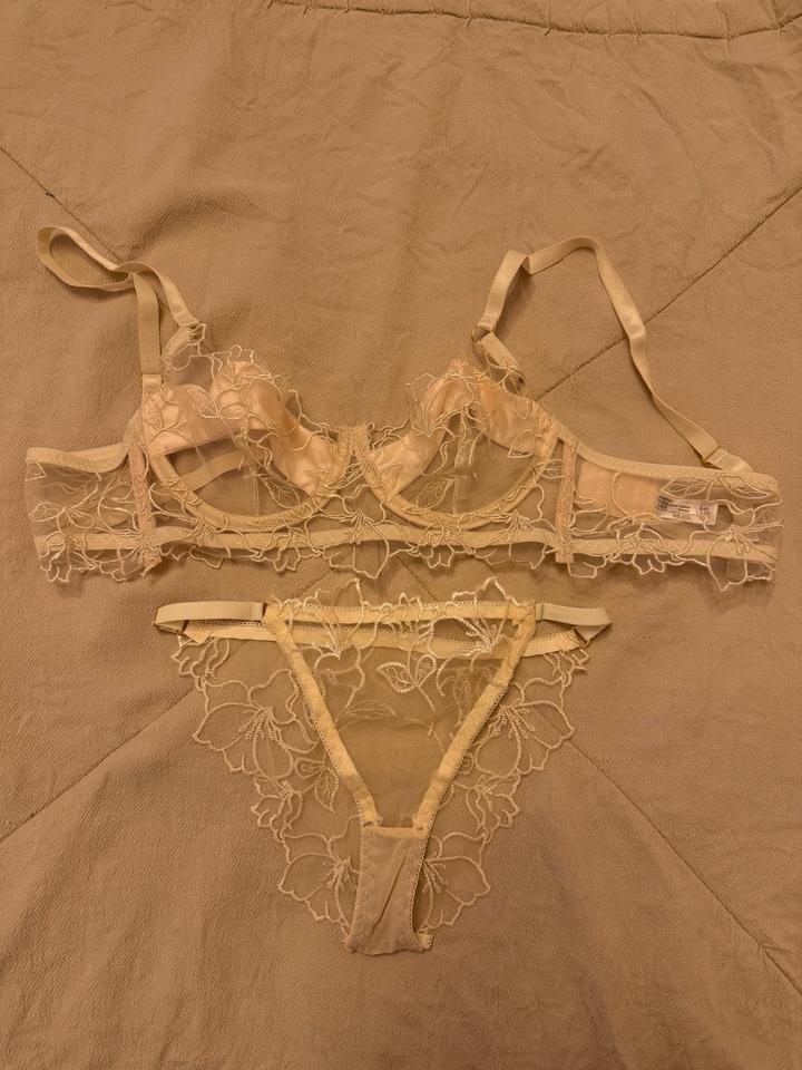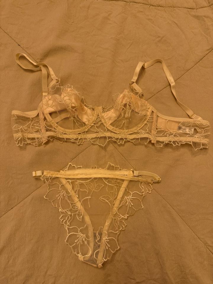 Очень нежный набор, цвет Айвори. Качество отличное. Максимально на S размер. Приятное на ощупь Артикул: 593674