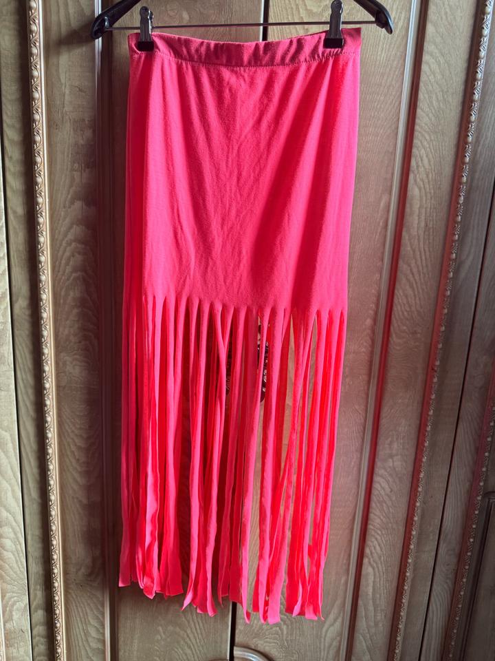 Яркая юбка неонового оттенка с эффектной длинной бахромой. Эластичная посадка на резинке, хорошо тянется и садится по фигуре. Лёгкая ткань, комфортна в носке. Идеально подойдёт для вечеринок, отдыха, фотосессий или летних образов. Состояние хорошее. Артикул: 593679