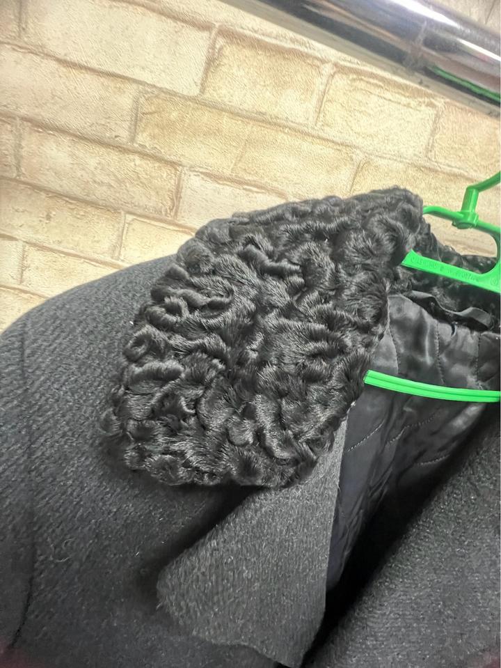 Шерсть пальто 52-54 Грудь 130 см Длина 100 От плеча до плеча 55 Рукав 63 см Ворот каракуль Артикул: 593691