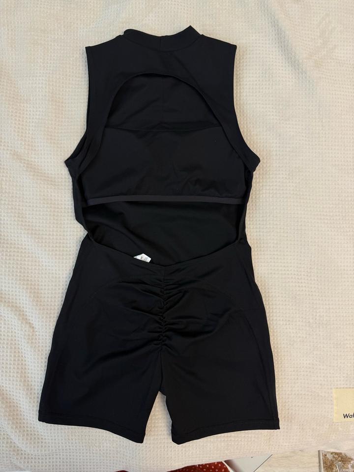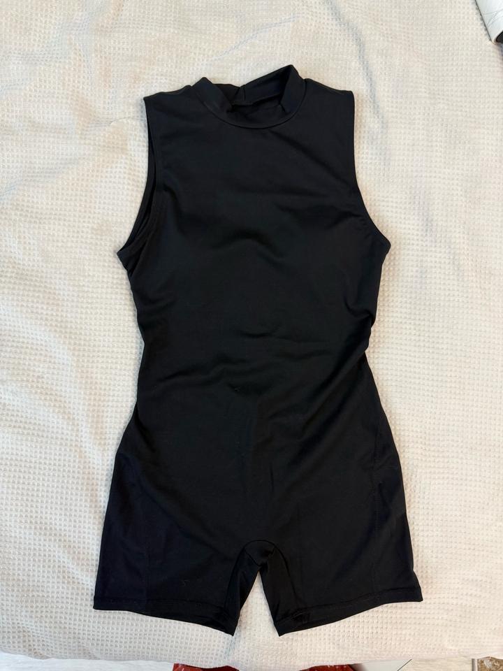 Черный короткий комбинезон, спортивный, на лето. Материал нейлон/полиамид, из лёгкого, эластичного, быстро сохнущего. Размер S Артикул: 593716