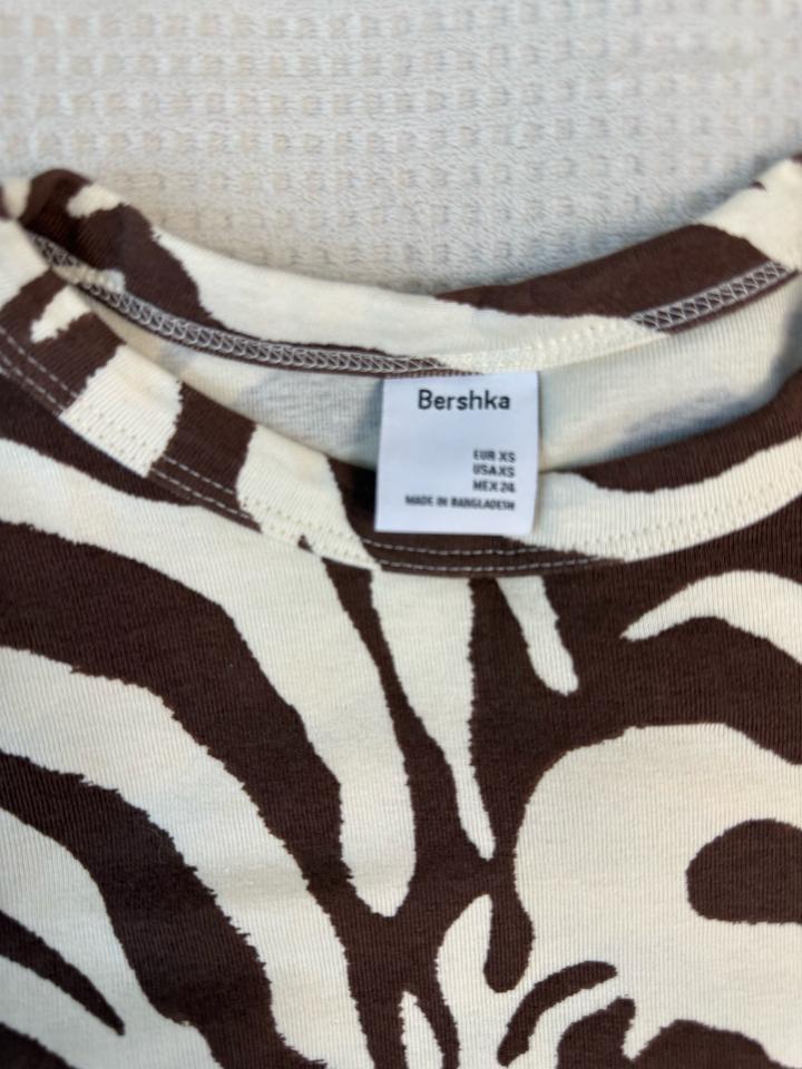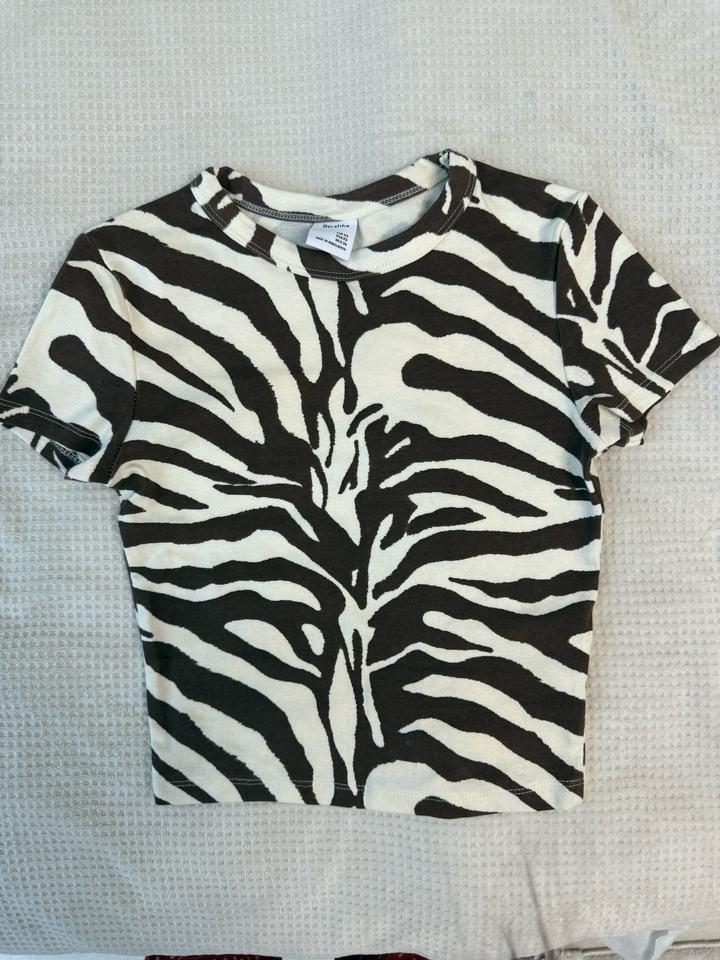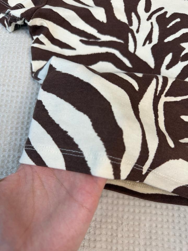 Футболка укороченная, с принтом зебры, коричневого цвета. Размер XS Артикул: 593754