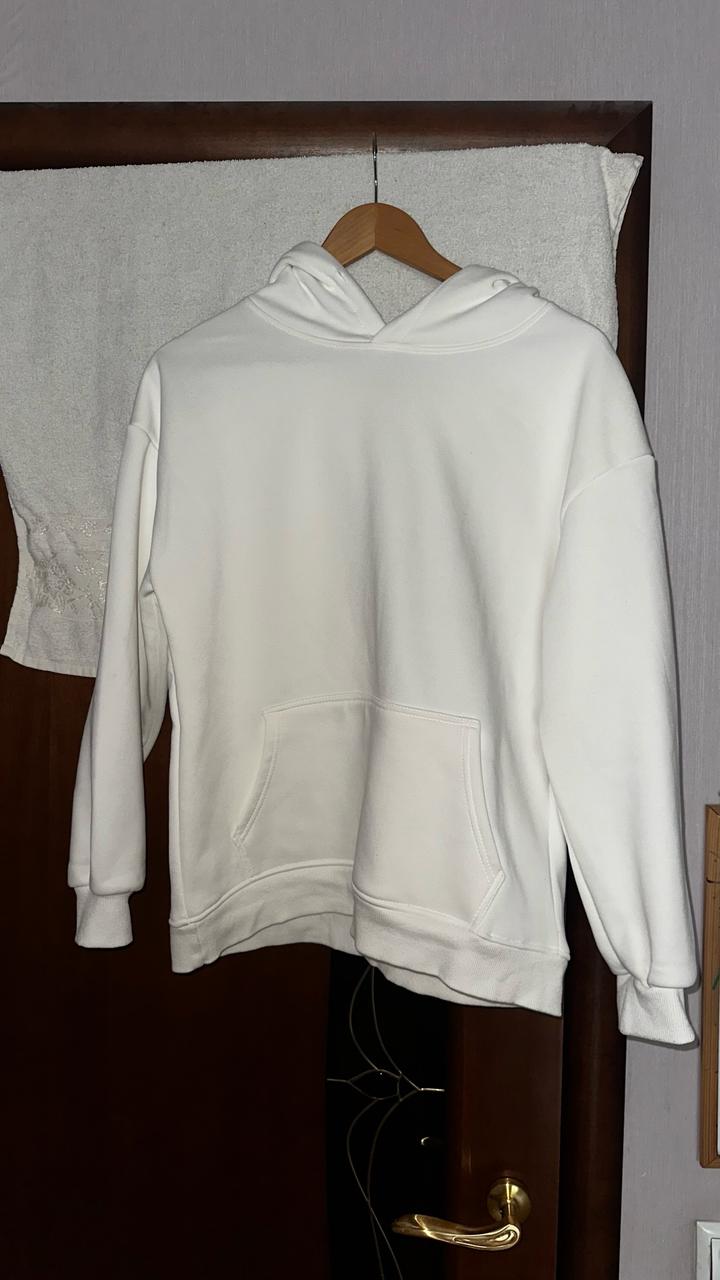 Классическая белая толстовка. Брала до фотосессии. Идеально новая, носила 1 раз. Капюшон маленький! Покупала в Китае в их брендовом магазине. Внутри очень теплая Артикул: 593848
