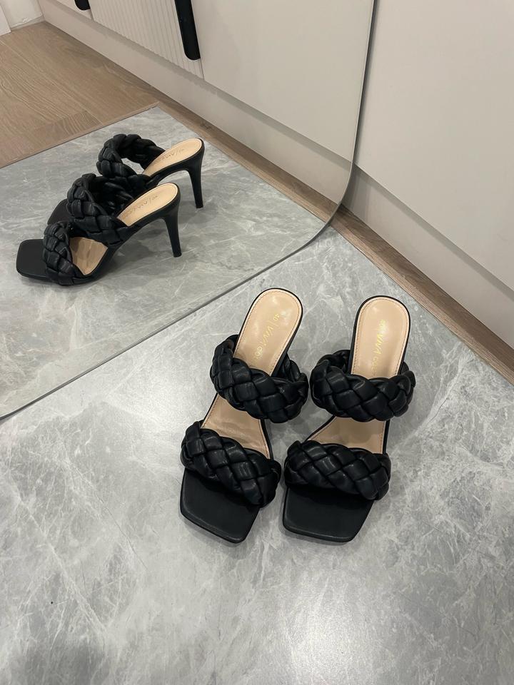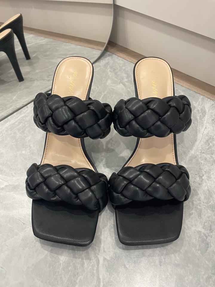 Мюли из плетеной кожи под Bottega. На каблучке. Устойчивая, удобная, подошва. Легкие. Артикул: 593883
