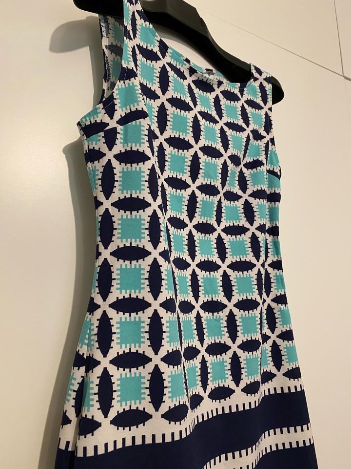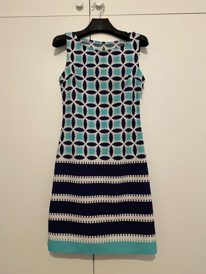 Платье с геометрическим принтом. Полиэстер. Подклада нет. Подойдет на размер 40-42. Длина платья 86см. Идеально на теплую весну и лето. Артикул: 593938