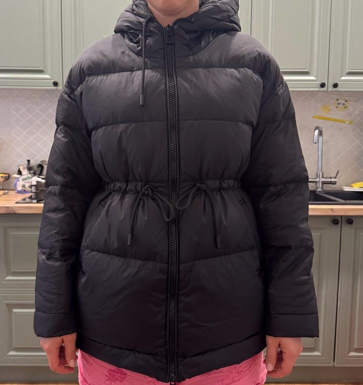Продам демисезонный пуховик с куличками на талии, в отличном состоянии, носила несколько раз. Размер L, на рост до 170 см. Артикул: 593950