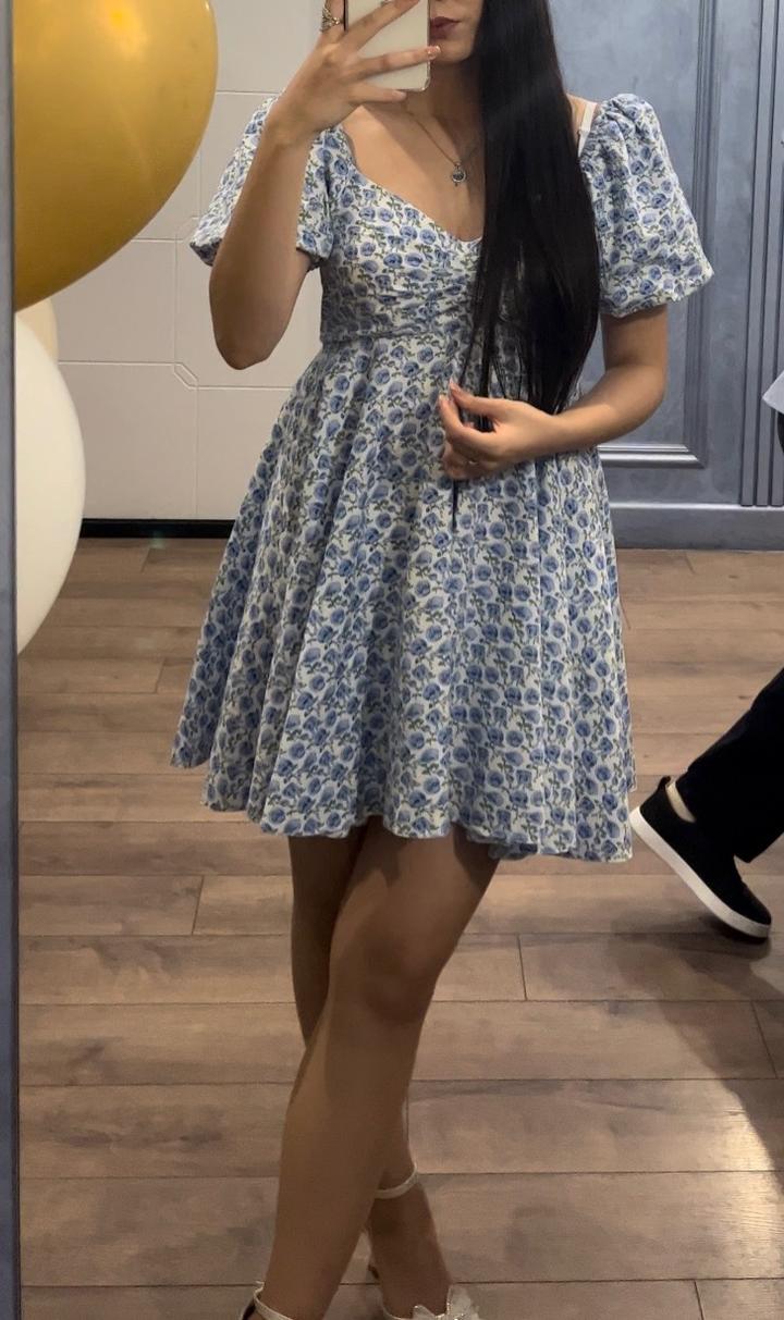 Платье голубое с мелкими цветочками в идеальном состоянии Артикул: 593972